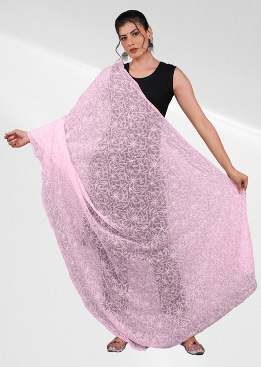 Firgun Blush Pink Tepchi Lucknowi Chikankari Georgette Dupatta