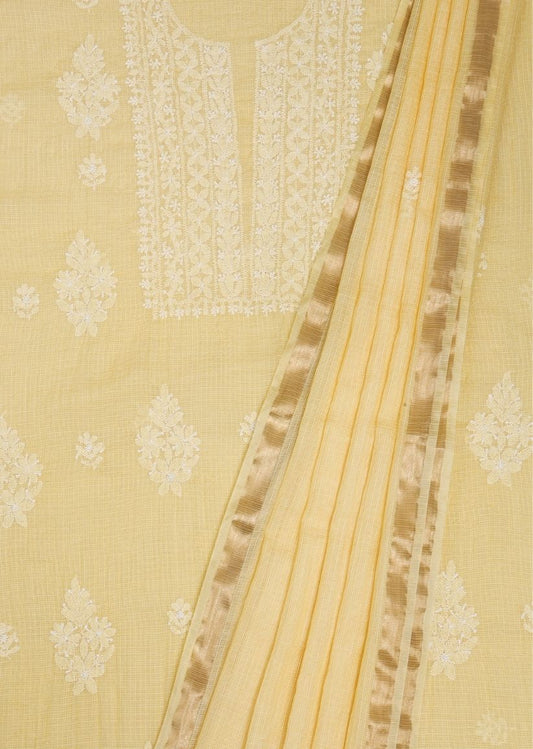 Firgun Yellow Lucknowi Chikankari Kota Unstitched Kurta & Dupatta Set