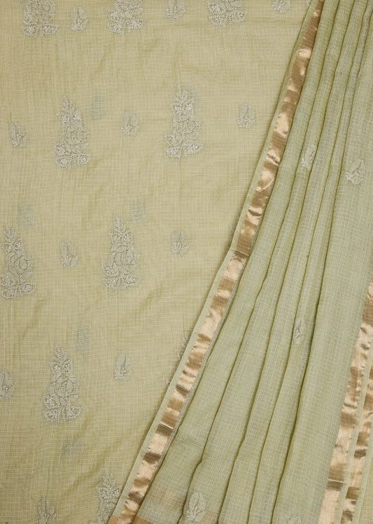 Firgun Mint Green Lucknowi Chikankari Chanderi Silver Tissue Unstitched Kurta & Dupatta Set
