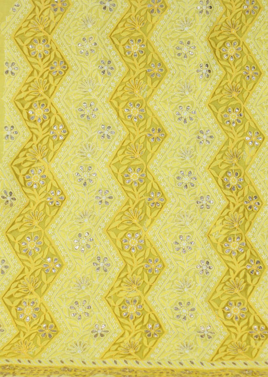 Firgun Lemon Yellow Tepchi Lucknowi Chikankari Georgette Dupatta