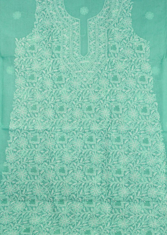 Firgun Sea Green Lucknowi Chikankari Cotton Unstitched Kurta