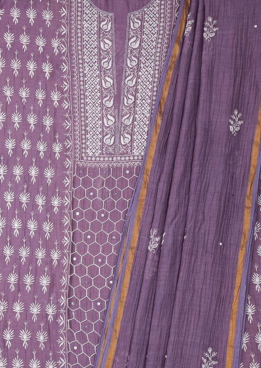 Firgun Mauve Lucknowi Chikankari Maheshwari Cotton Unstitched Kurta & Dupatta Set
