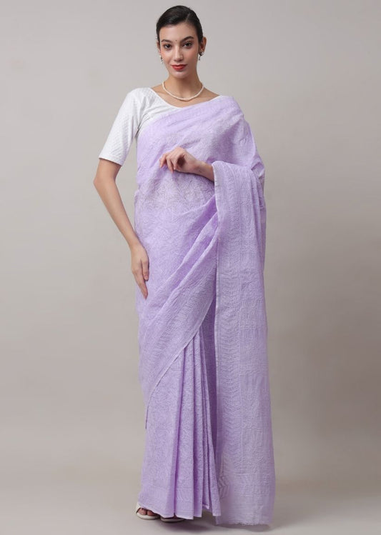 Firgun Lavender Lucknowi Chikankari Kota Doria Tepchi Work Saree with Blouse PieceRegular price Rs. 7,650.00Regular priceUnit price / perRs. 7,650.00Sale price Rs. 7,650.00