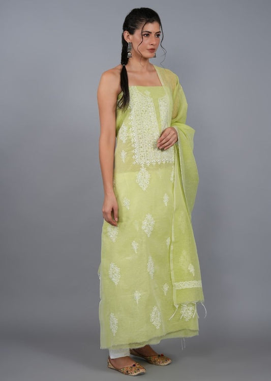 Firgun Green Lucknowi Chikankari Linen Unstitched Kurta & Dupatta SetRegular price Rs. 4,999.00Regular priceUnit price / per-