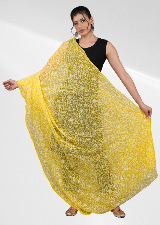 Firgun Lemon Yellow Tepchi Lucknowi Chikankari Georgette DupattaRegular price Rs. 2,450.00Regular priceUnit price / per-