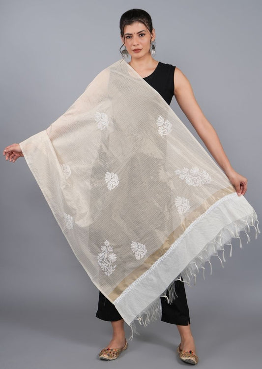 Firgun White & Gold Lucknowi Chikankari Tissue Chanderi DupattaRegular price Rs. 2,650.00Regular priceUnit price / per-