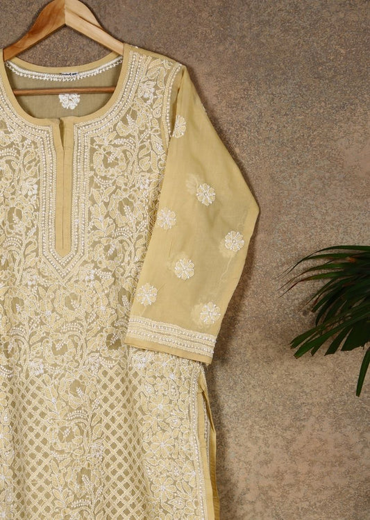 Firgun Beige Lucknowi Chikankari Cotton Kurta with Front JaalRegular price Rs. 3,250.00Regular priceUnit price / per-