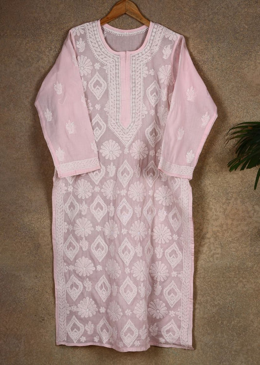 Firgun Blush Pink Lucknowi Chikankari Cotton Kurta with Front JaalRegular price Rs. 2,750.00Regular priceUnit price / per-
