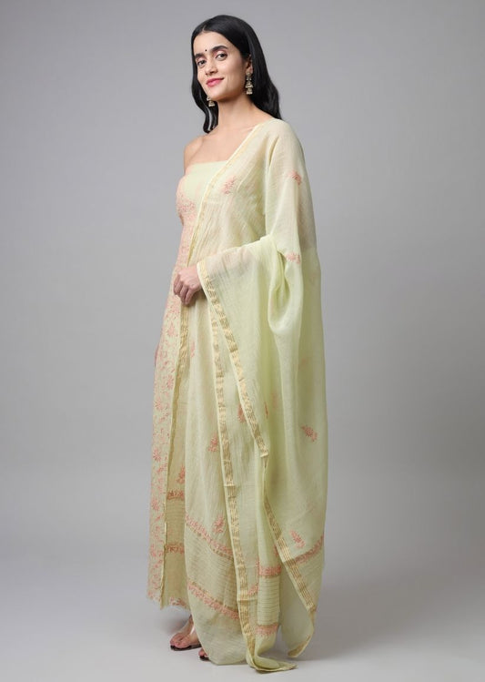 Firgun Light Green Lucknowi Chikankari Mul Chanderi Unstitched Kurta & Dupatta SetRegular price Rs. 9,250.00Regular priceUnit price / per-