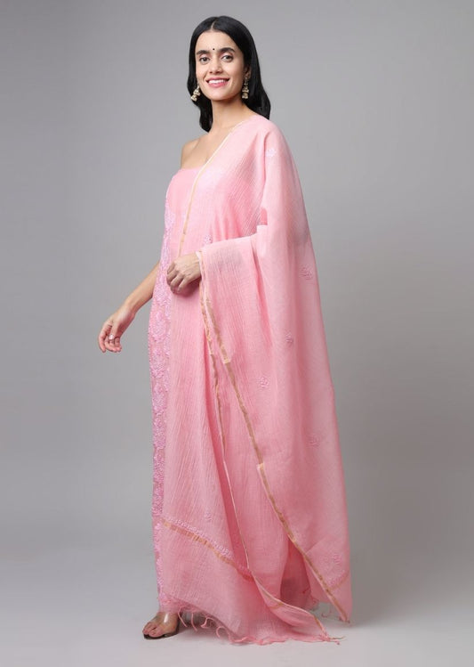 Firgun Rose Pink Lucknowi Chikankari Mul Chanderi Unstitched Kurta & Dupatta SetRegular price Rs. 6,250.00Regular priceUnit price / per-