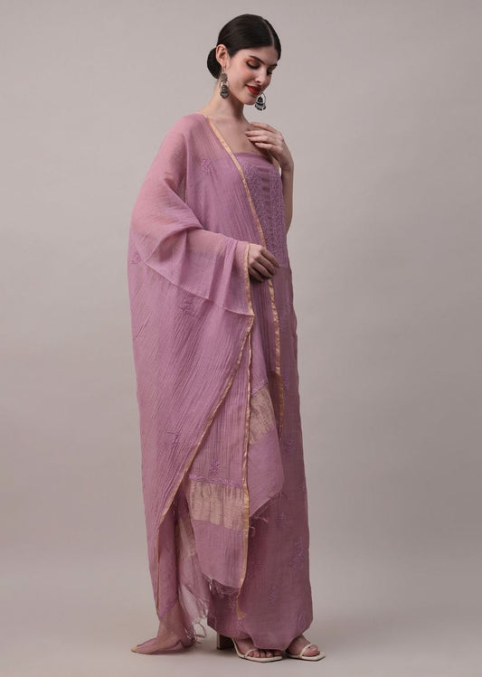 Firgun Mauve Lucknowi Chikankari & Pearl Work Mul Chanderi Unstitched Kurta & Dupatta SetRegular price Rs. 10,500.00Regular priceUnit price / per-