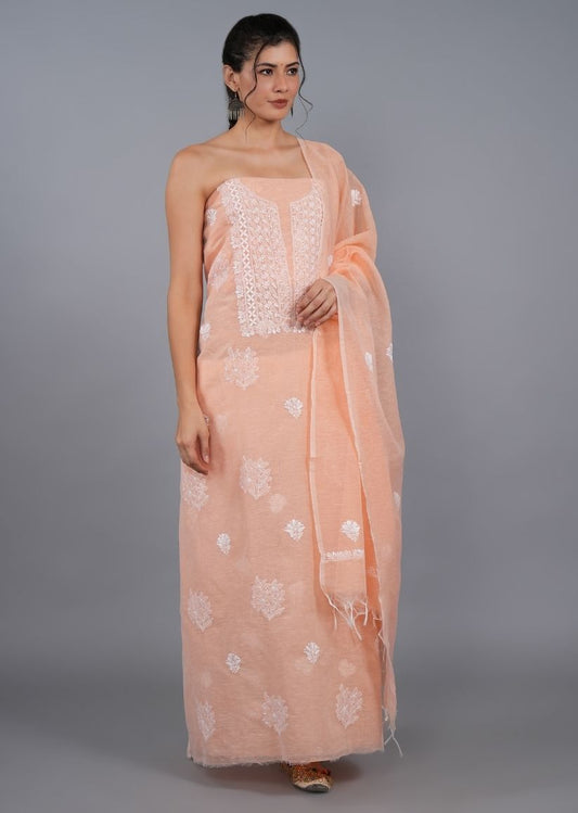 Firgun Peach Lucknowi Chikankari Mul Chanderi Unstitched Kurta & Dupatta SetRegular price Rs. 6,250.00Regular priceUnit price / per-