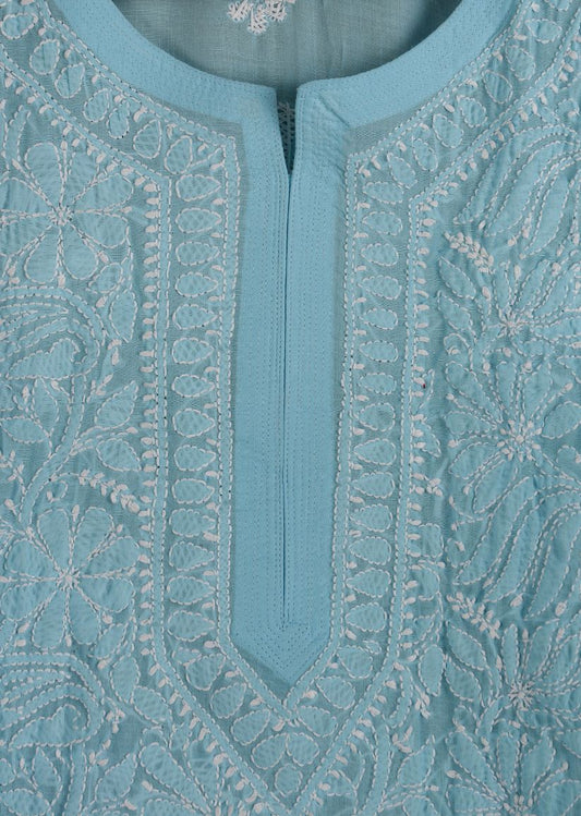 Firgun Blue Lucknowi Chikankari Cotton Top