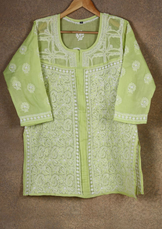 Firgun Lemon Lucknowi Chikankari Cotton Top