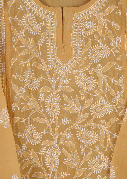 Firgun Mustard Lucknowi Chikankari Cotton Top
