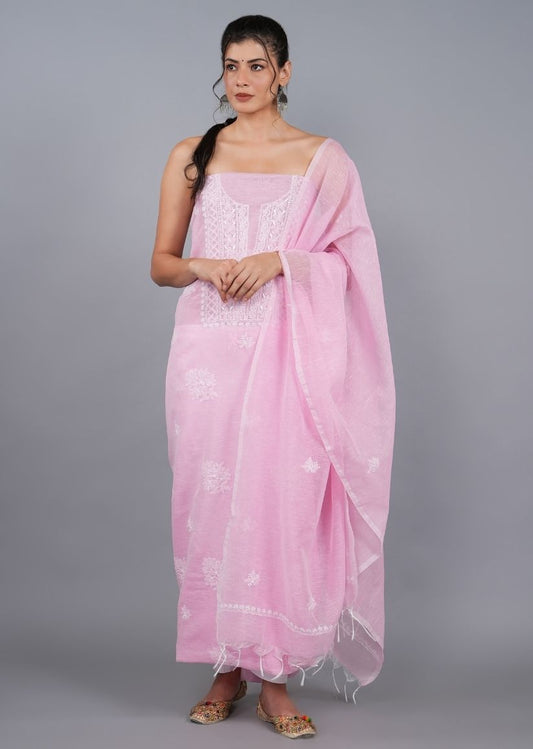 Firgun Rose Pink Lucknowi Chikankari Mul Chanderi Unstitched Kurta & Dupatta SetRegular price Rs. 6,250.00Regular priceUnit price / per-