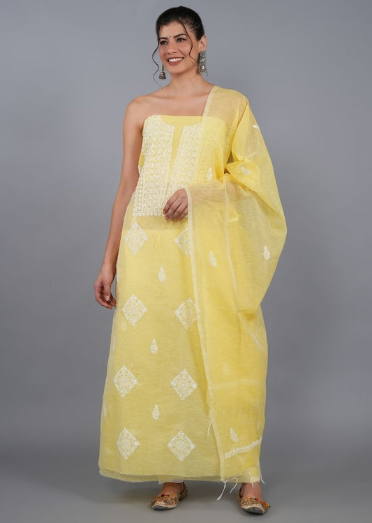 Firgun Yellow Lucknowi Chikankari Linen Unstitched Kurta & Dupatta SetRegular price Rs. 4,999.00Regular priceUnit price / per-
