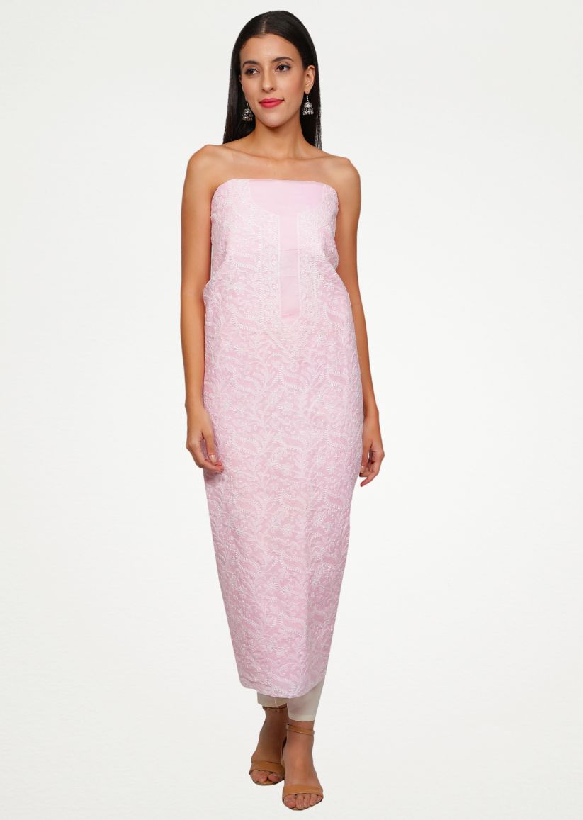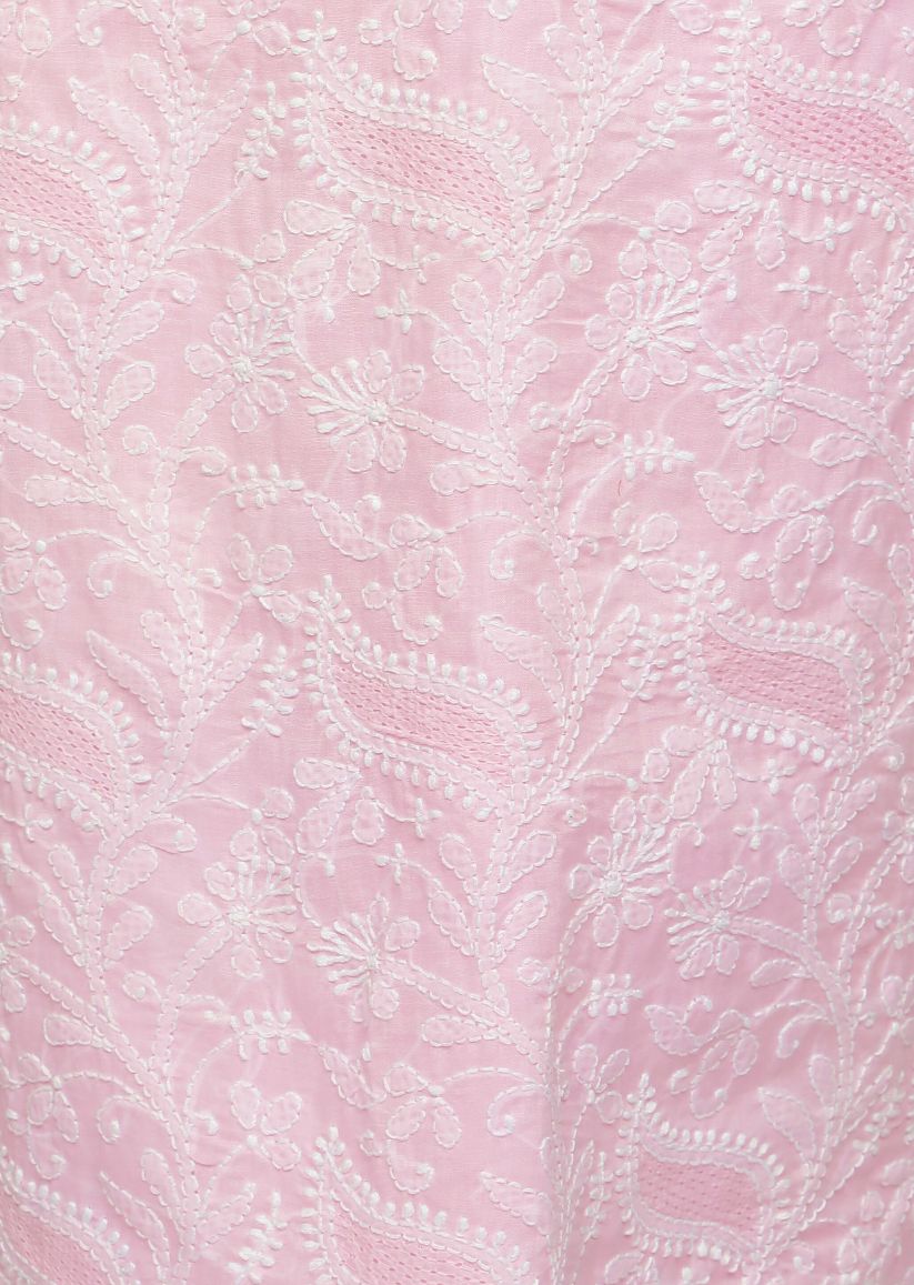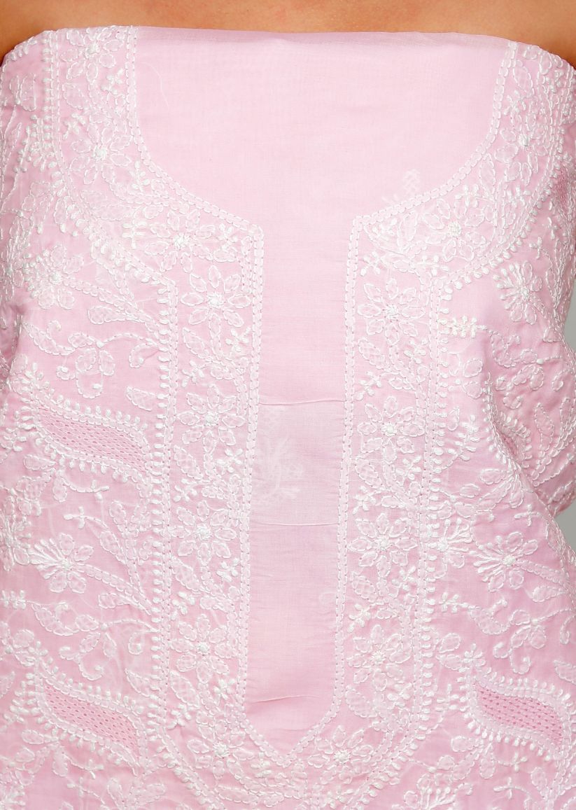 Firgun Baby Pink Lucknowi Chikankari Cotton Unstitched Suit Set
