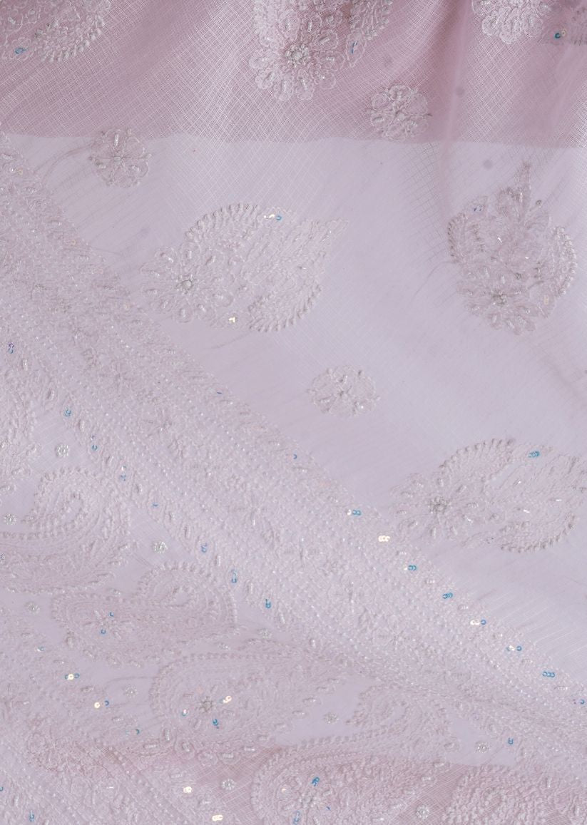 Firgun Lavender Lucknowi Chikankari Viscose Georgette Saree with Unstitched Blouse Piece