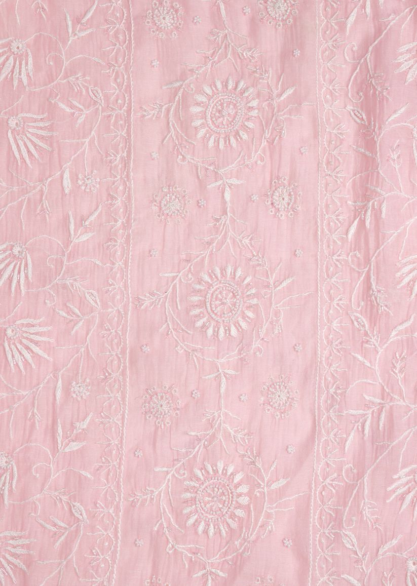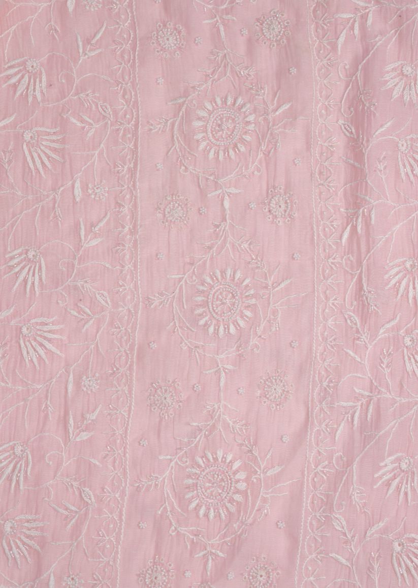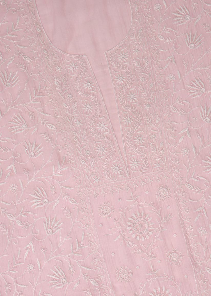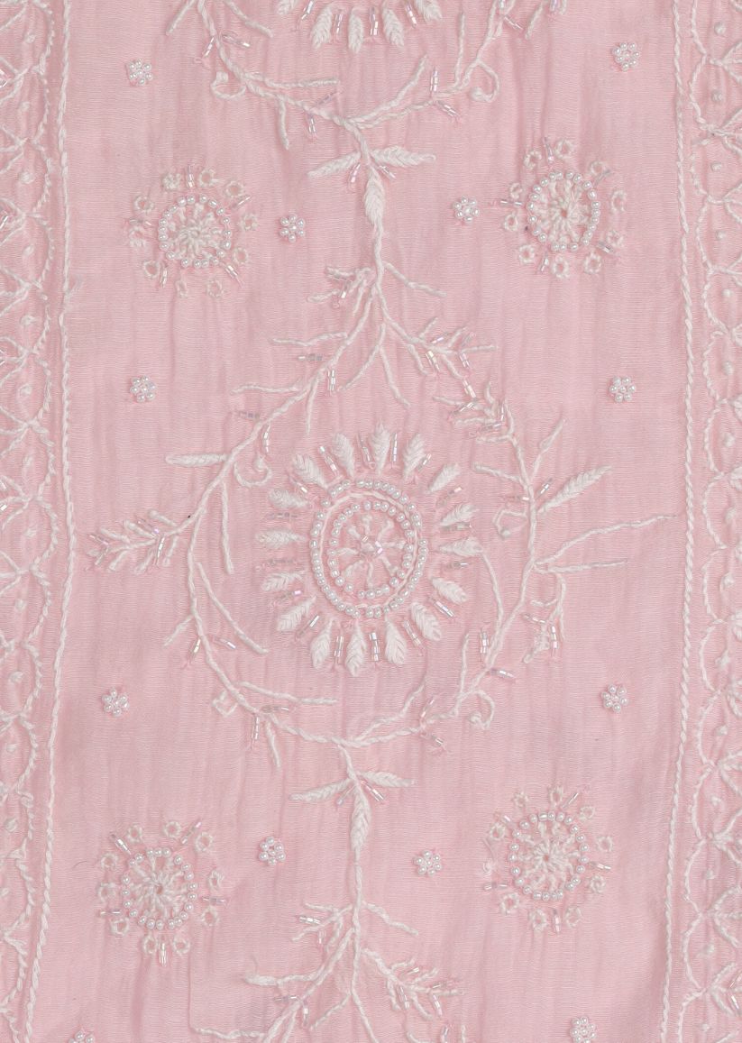 Firgun Baby Pink Lucknowi Chikankari & Pearl Work Mul Chanderi Unstitched Kurta & Dupatta Set