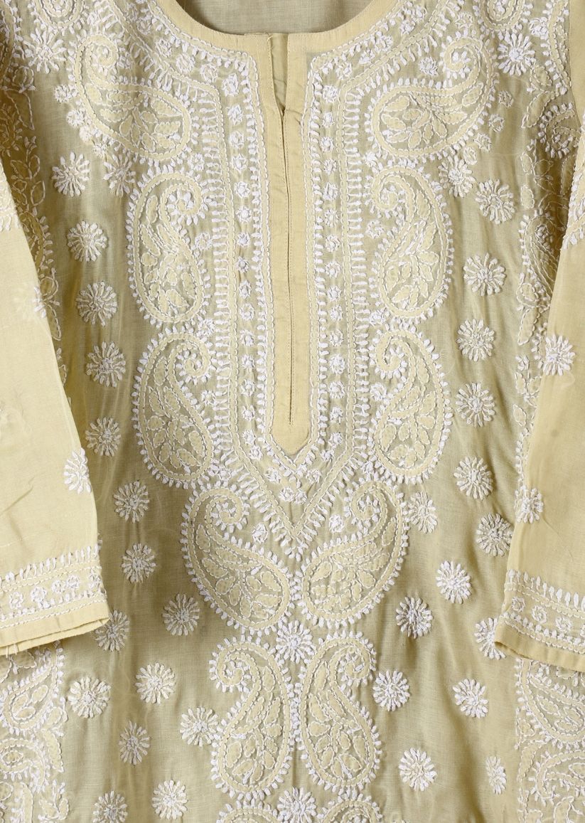 Firgun Beige Lucknowi Chikankari Cotton Kurta