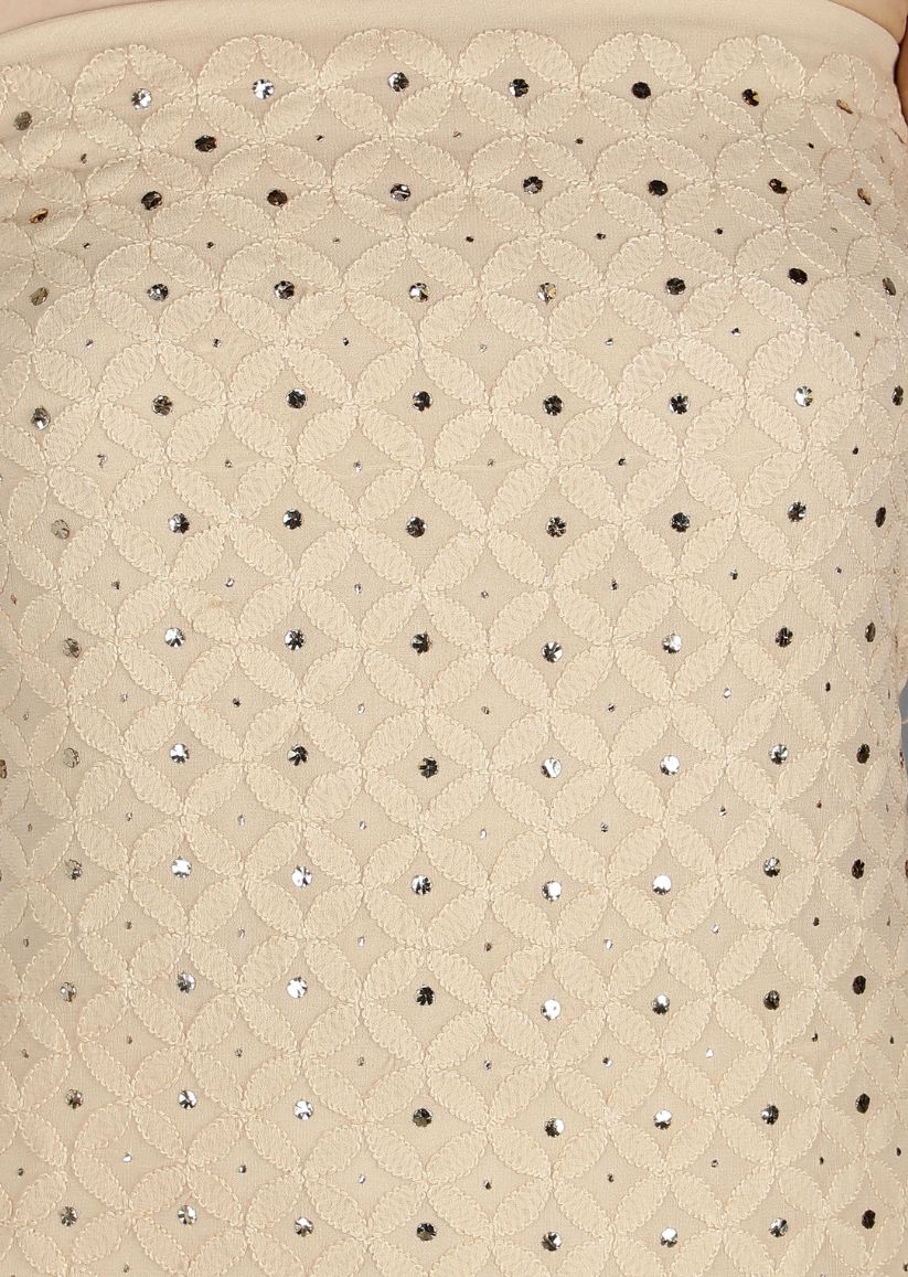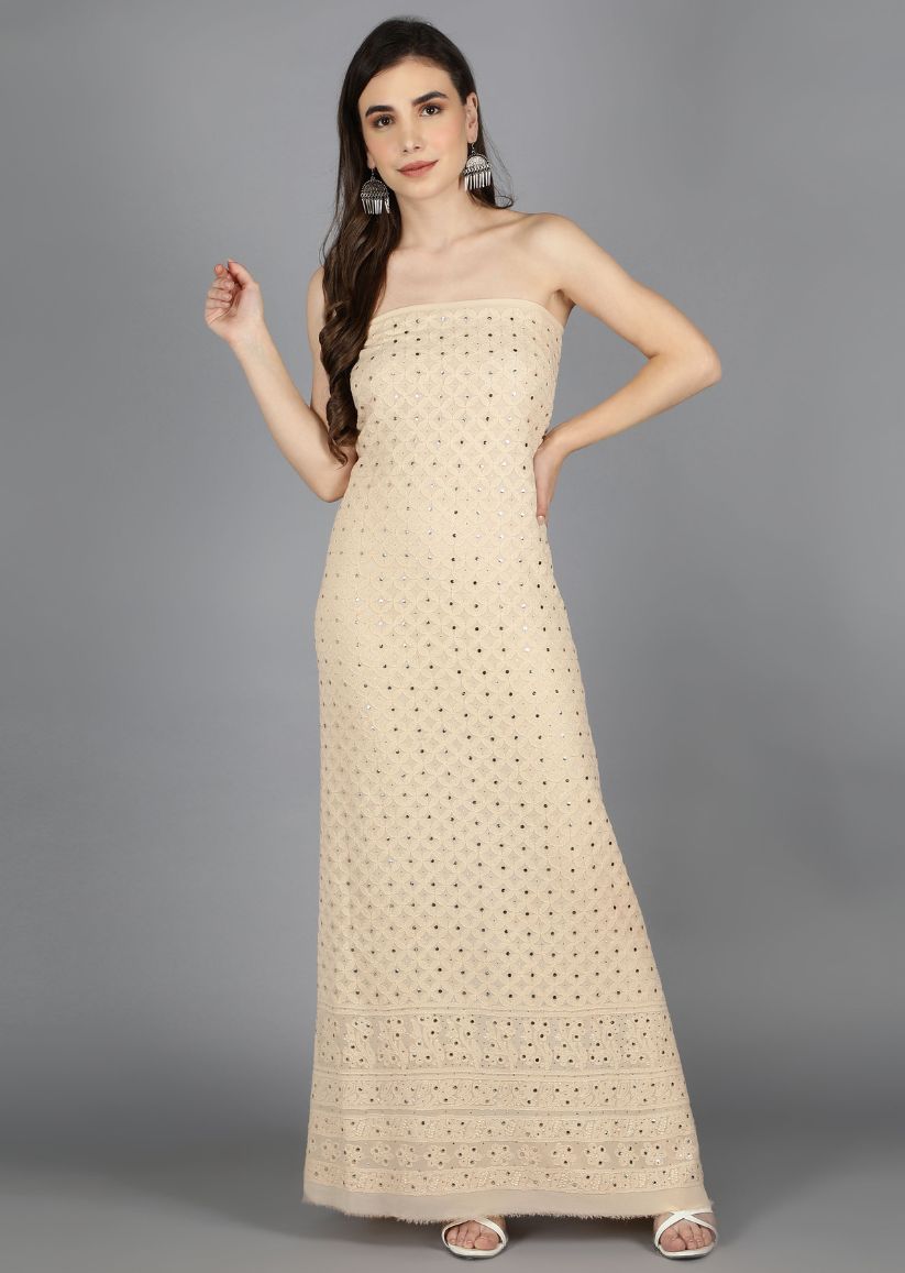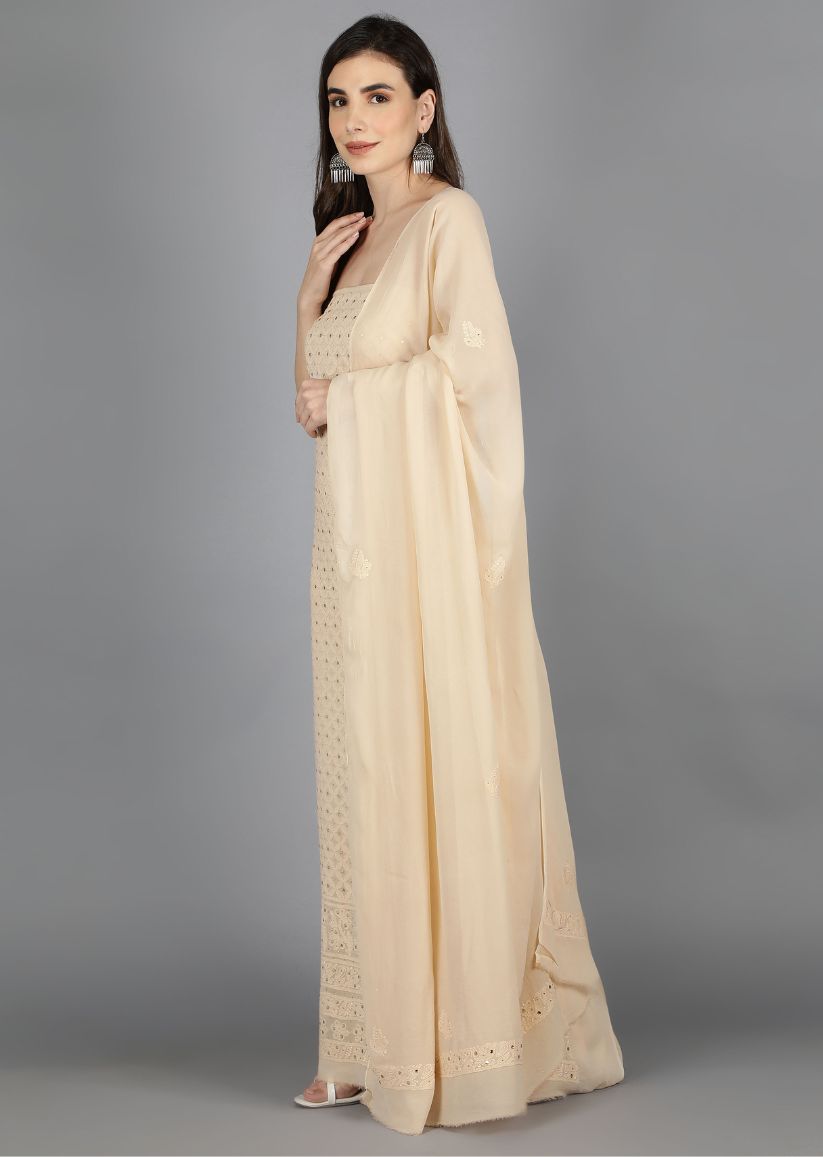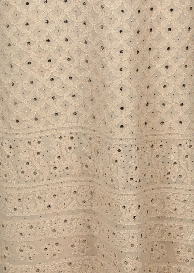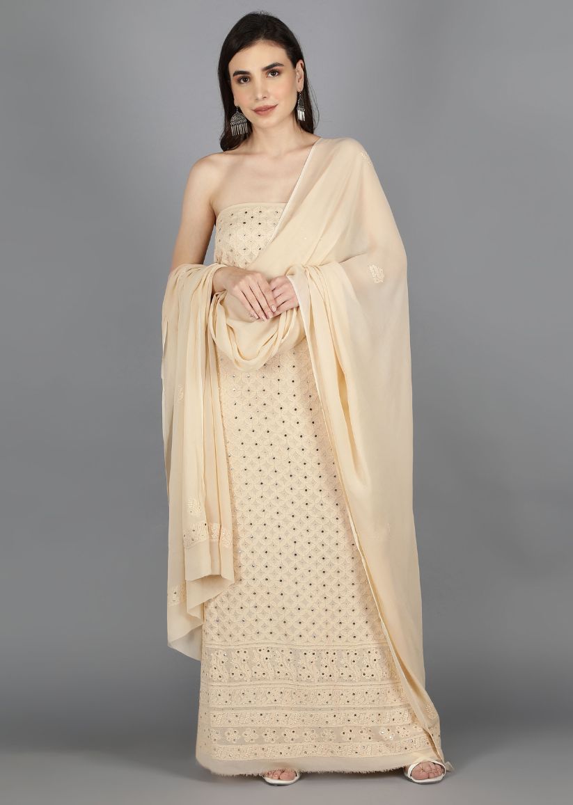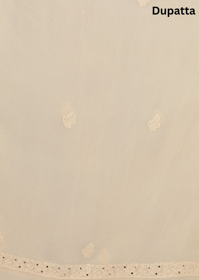 Firgun Beige Lucknowi Chikankari Viscose Georgette Unstitched Kurta & Dupatta Set-1