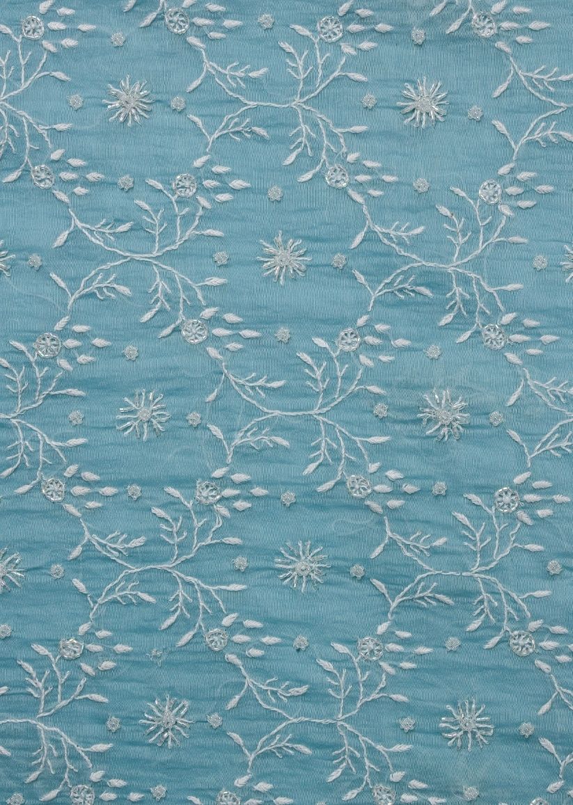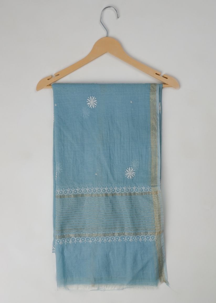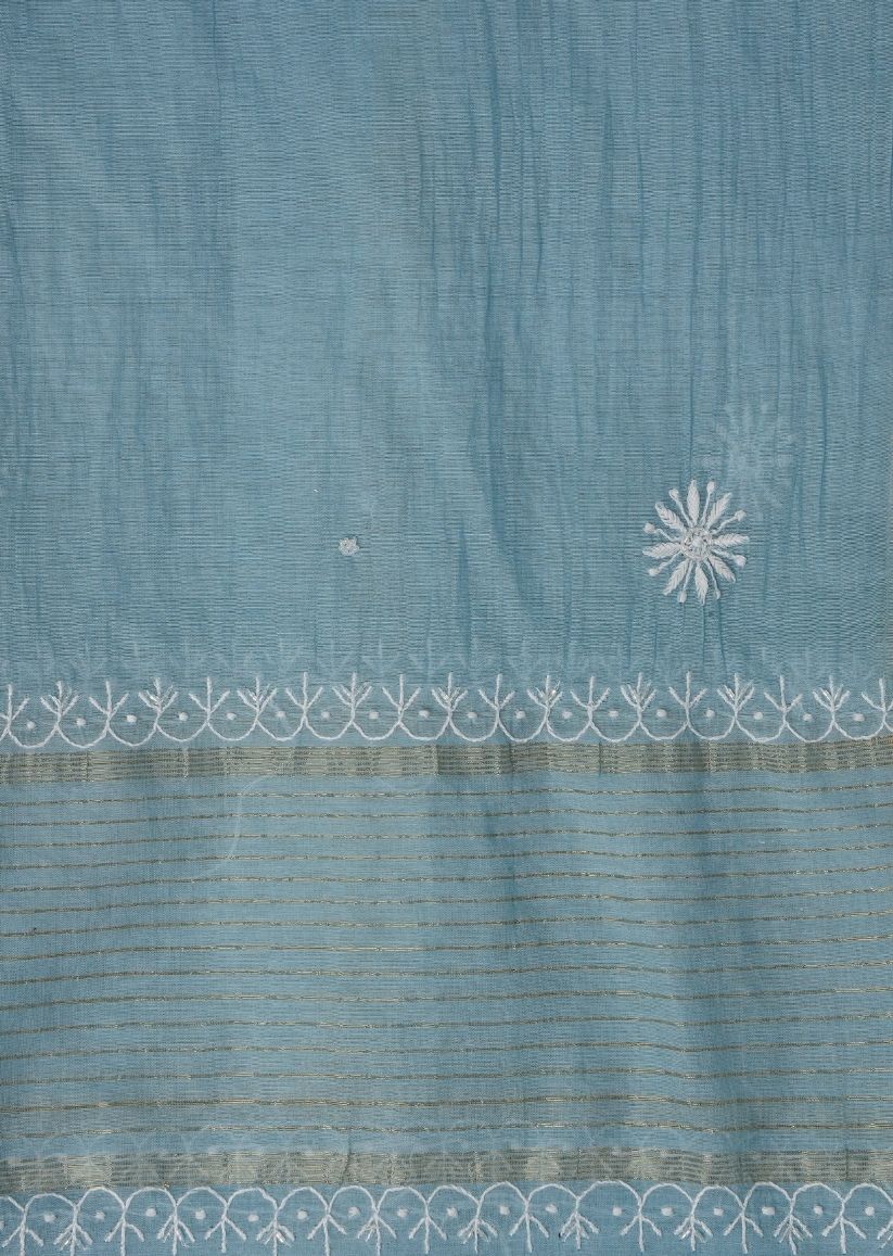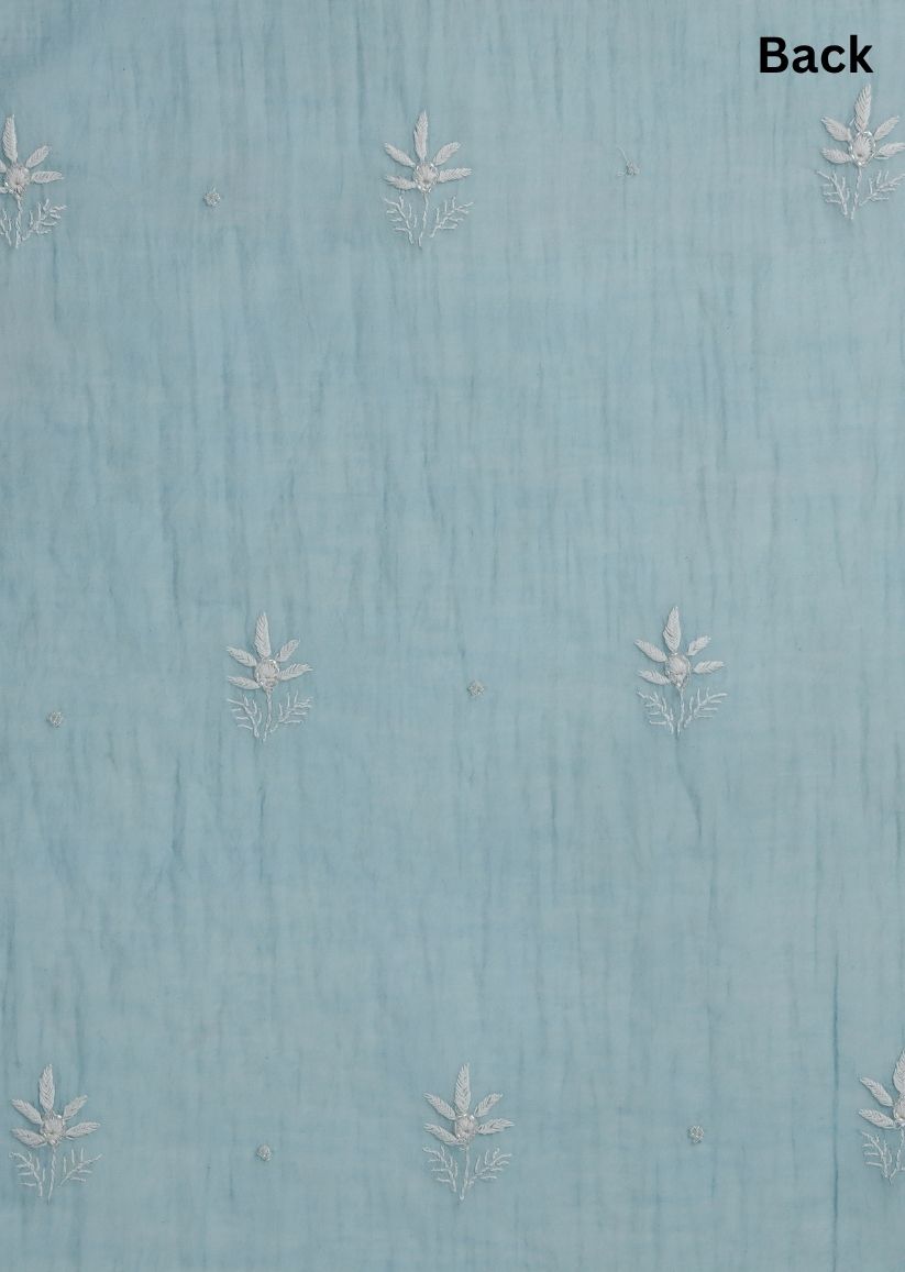 Firgun Cerulean Blue Lucknowi Chikankari Mul Chanderi Unstitched Kurta & Dupatta Set