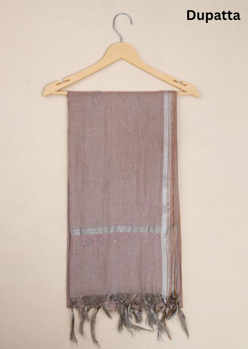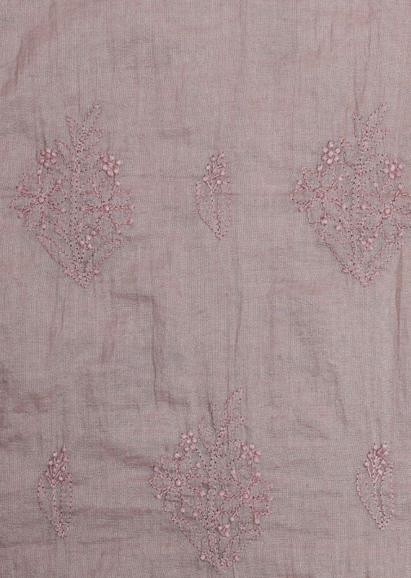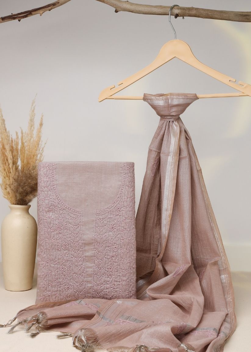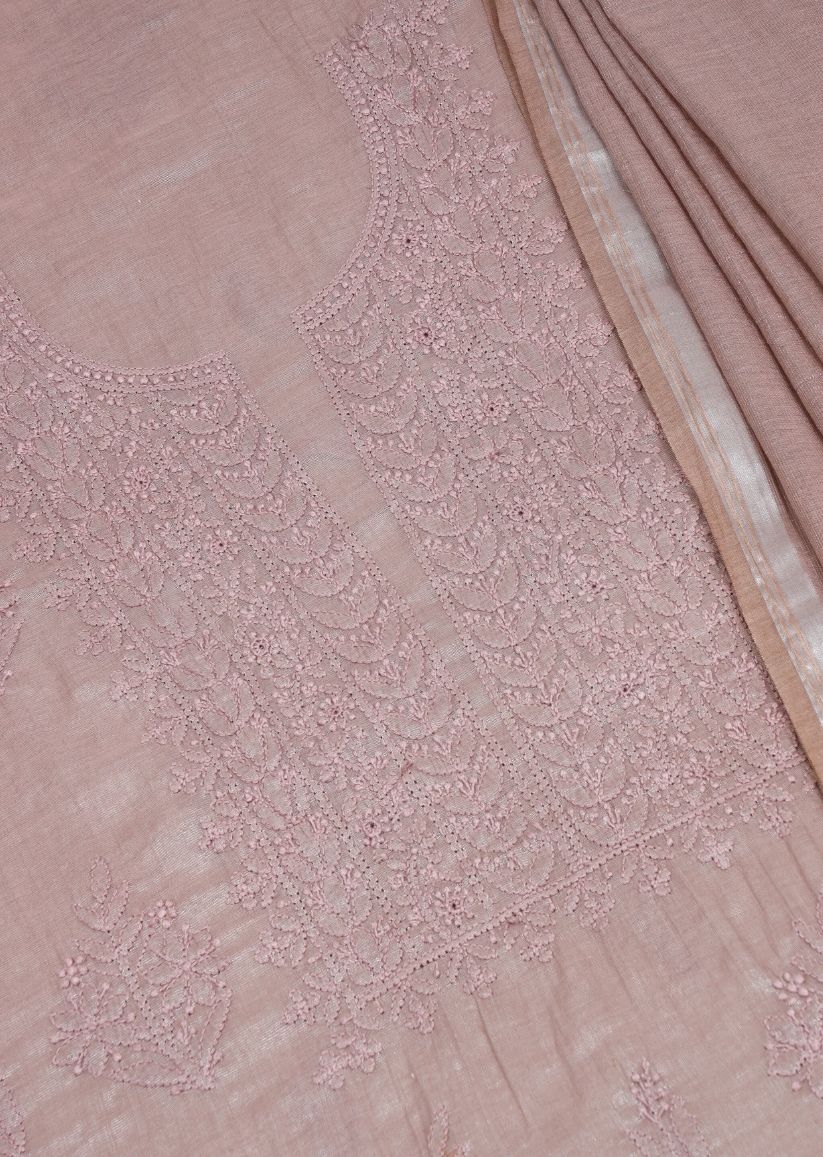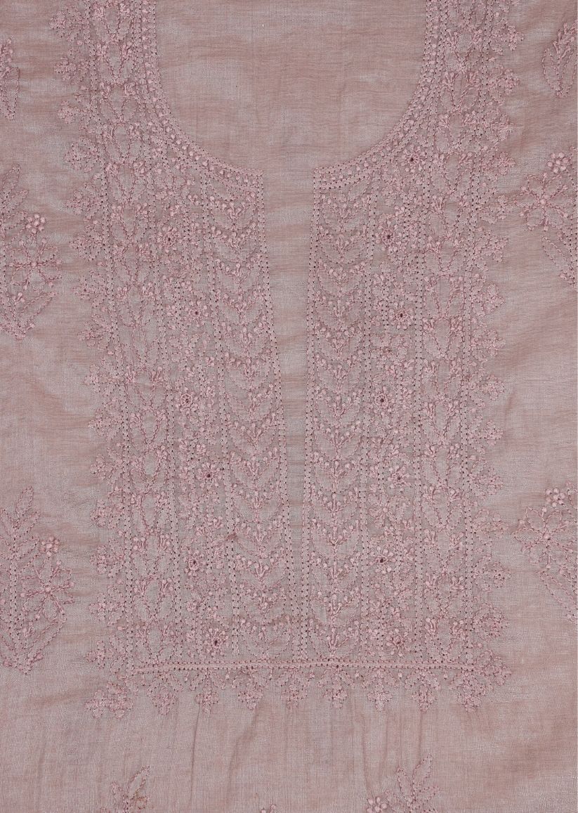 Firgun Mauve Pink Lucknowi Chikankari Mul Chanderi Unstitched Kurta & Dupatta Set