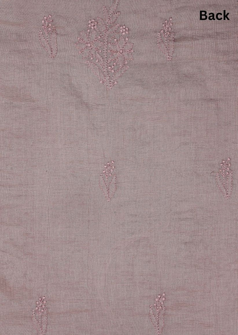 Firgun Mauve Lucknowi Chikankari Maheshwari Cotton Unstitched Kurta & Dupatta Set