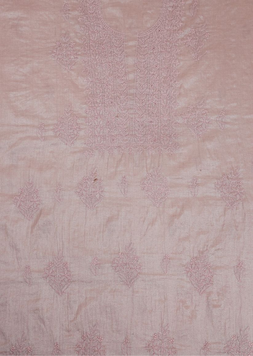 Firgun Baby Pink Lucknowi Chikankari & Pearl Work Mul Chanderi Unstitched Kurta & Dupatta Set