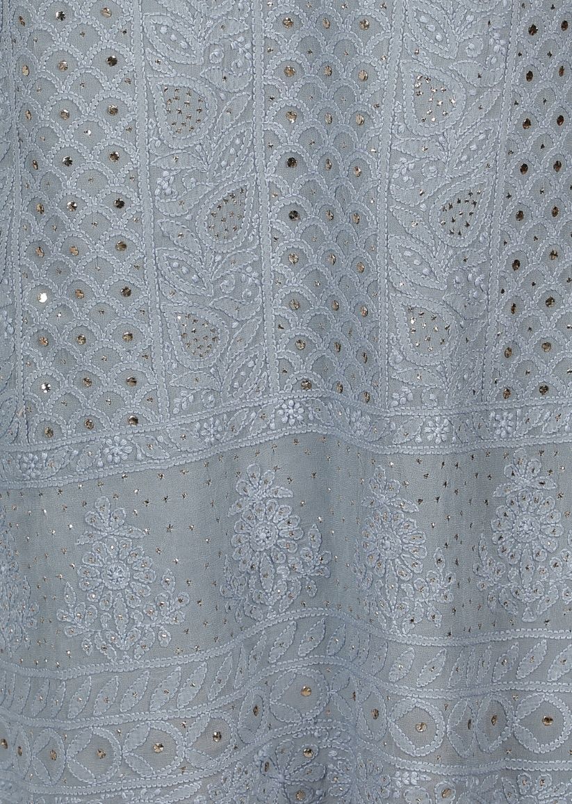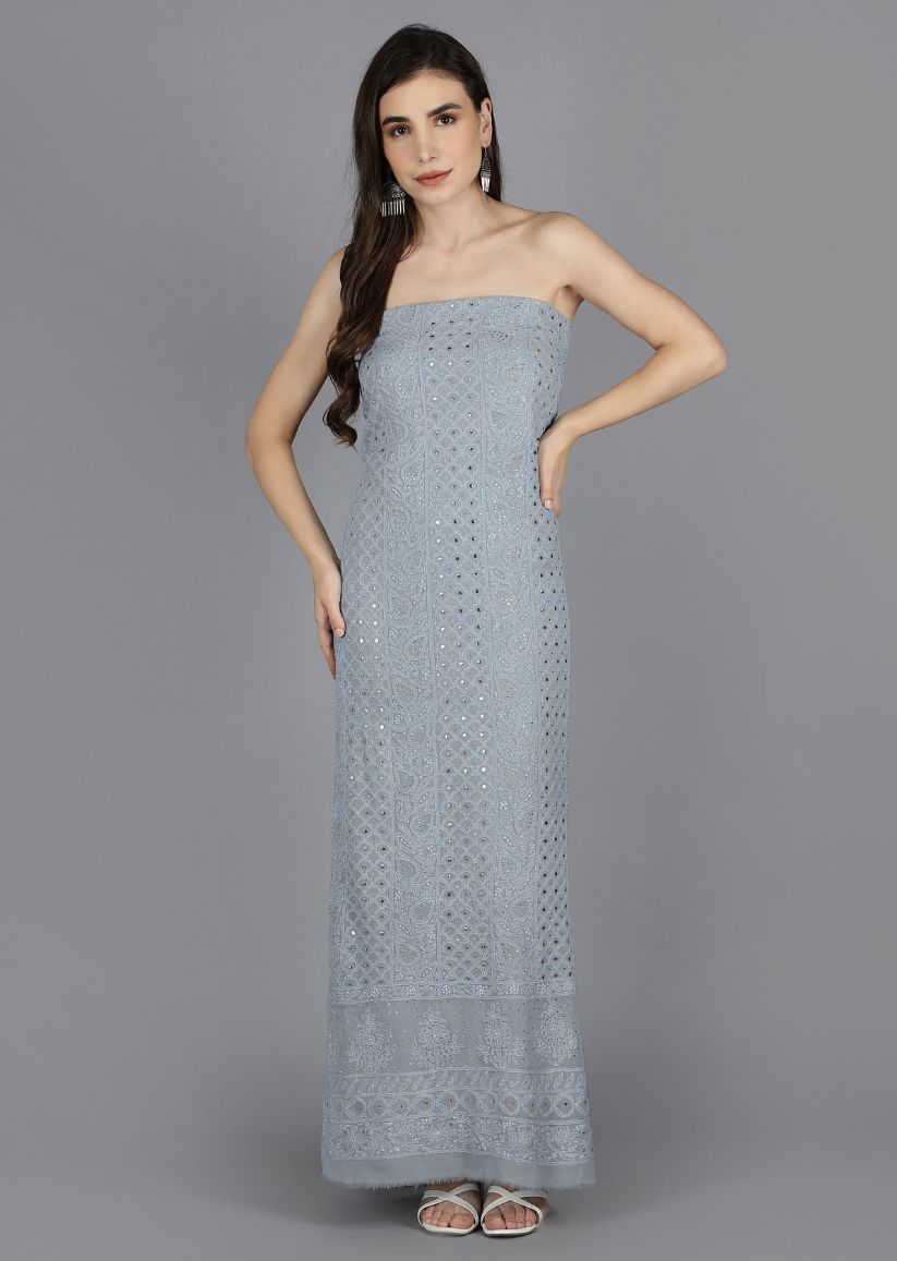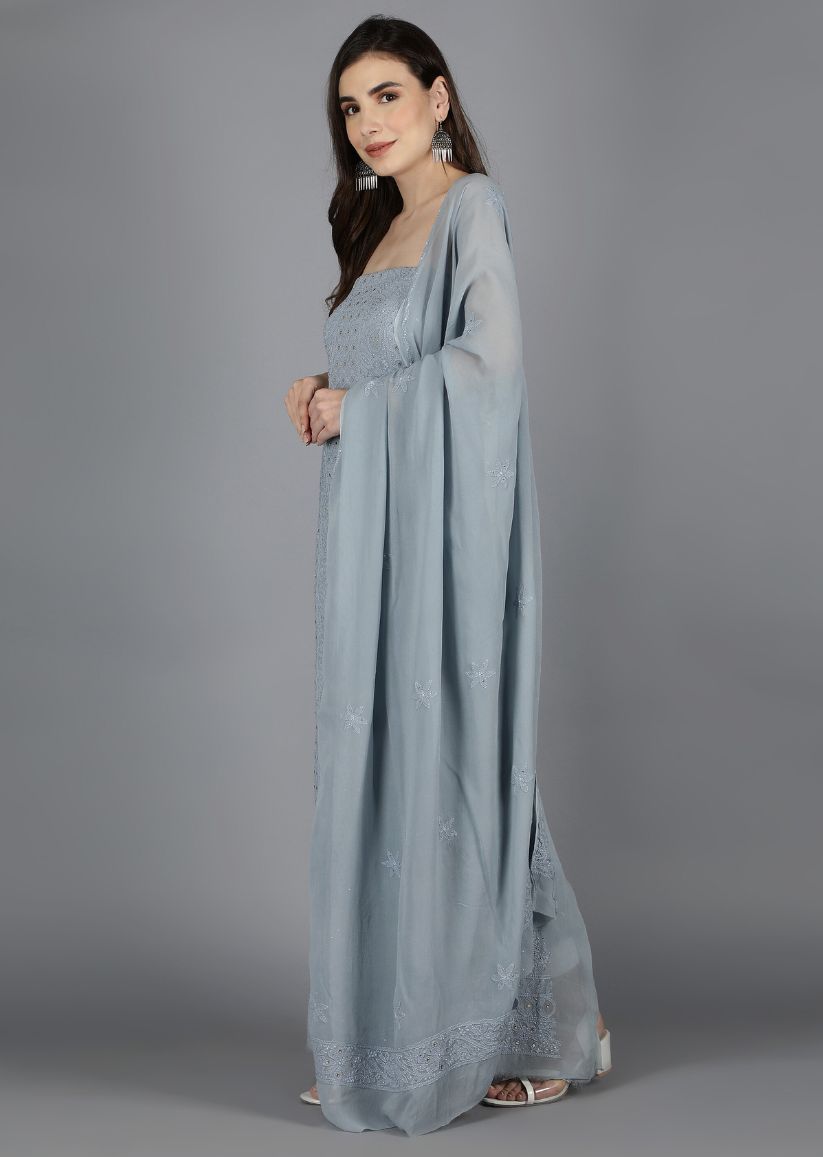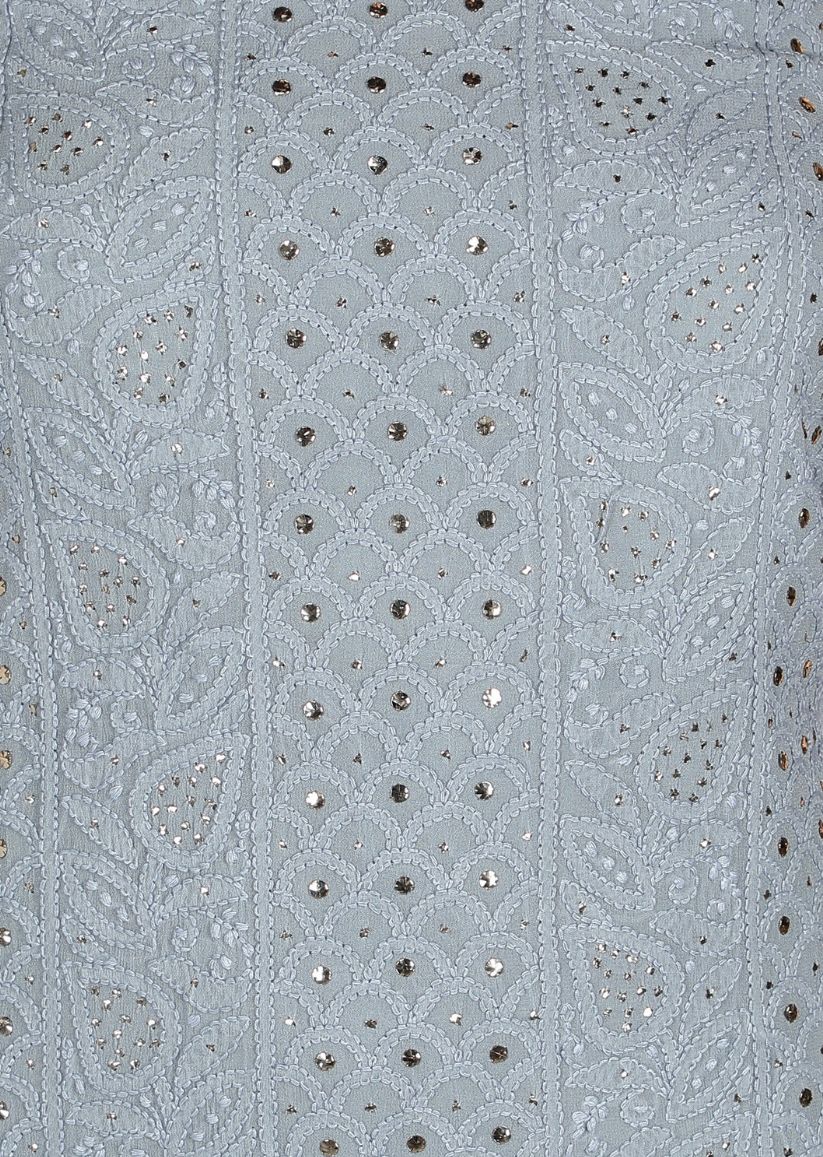 Firgun Grey Lucknowi Chikankari Viscose Georgette Unstitched Kurta & Dupatta Set-1