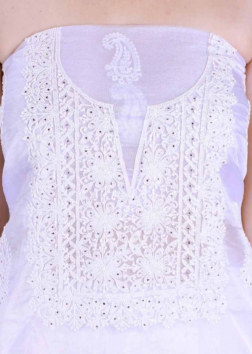Firgun White & Turquoise Lucknowi Chikankari Mul Chanderi Unstitched Kurta & Dupatta SetRegular price Rs. 9,750.00Regular priceUnit price / per-