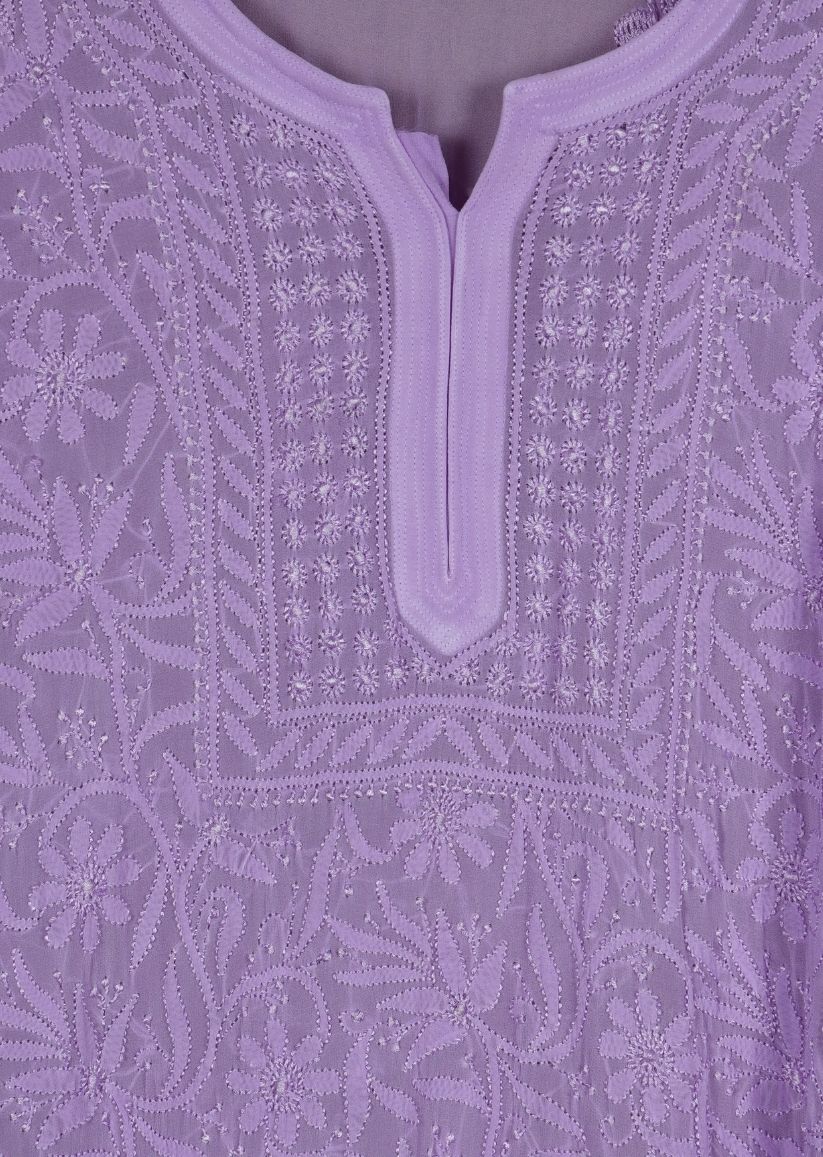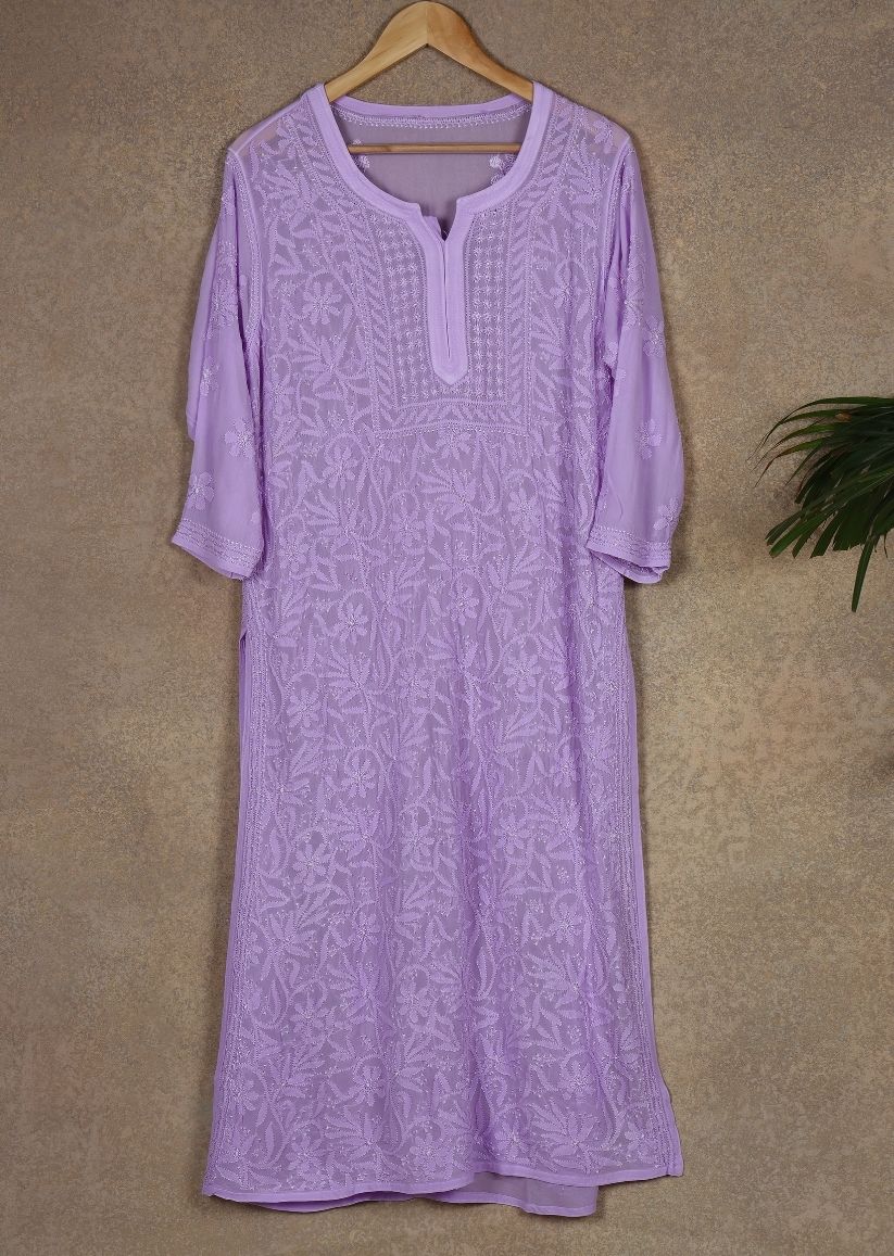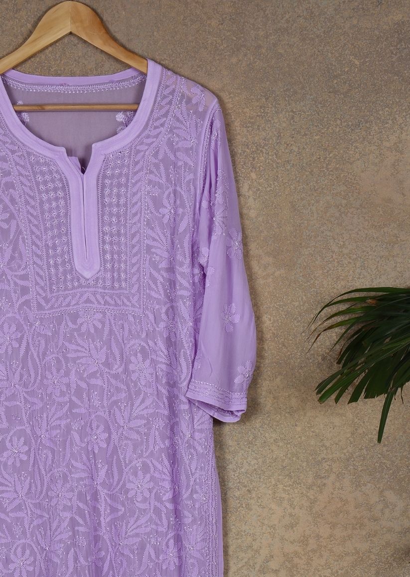 Firgun Lavender Lucknowi Chikankari Viscose Georgette Kurta