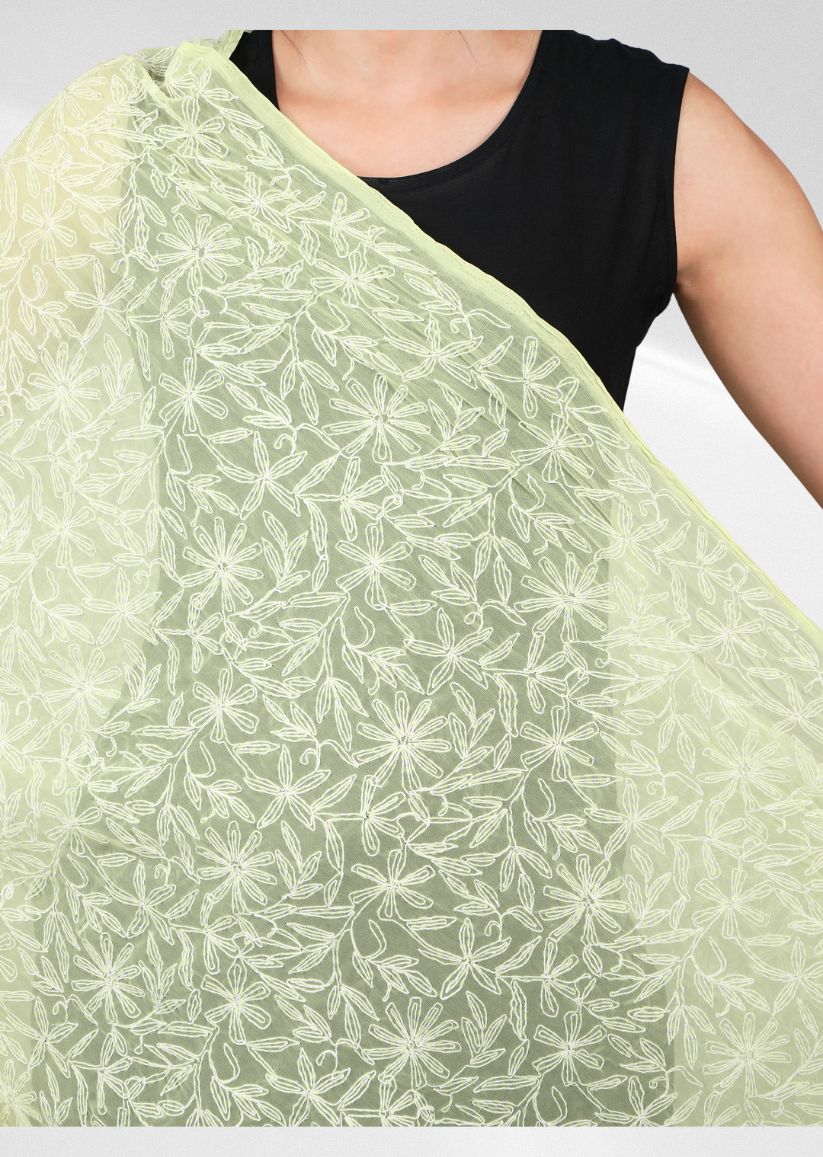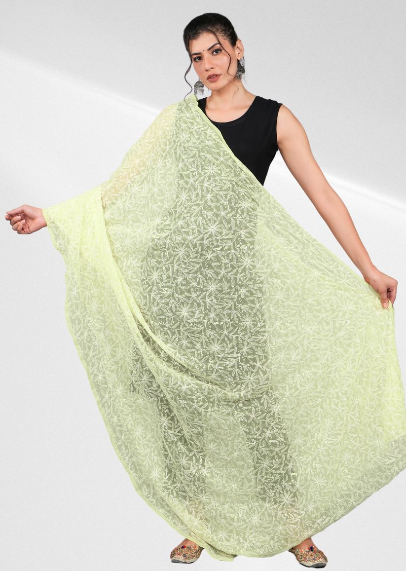 Firgun Lemon Yellow Tepchi Lucknowi Chikankari Georgette Dupatta