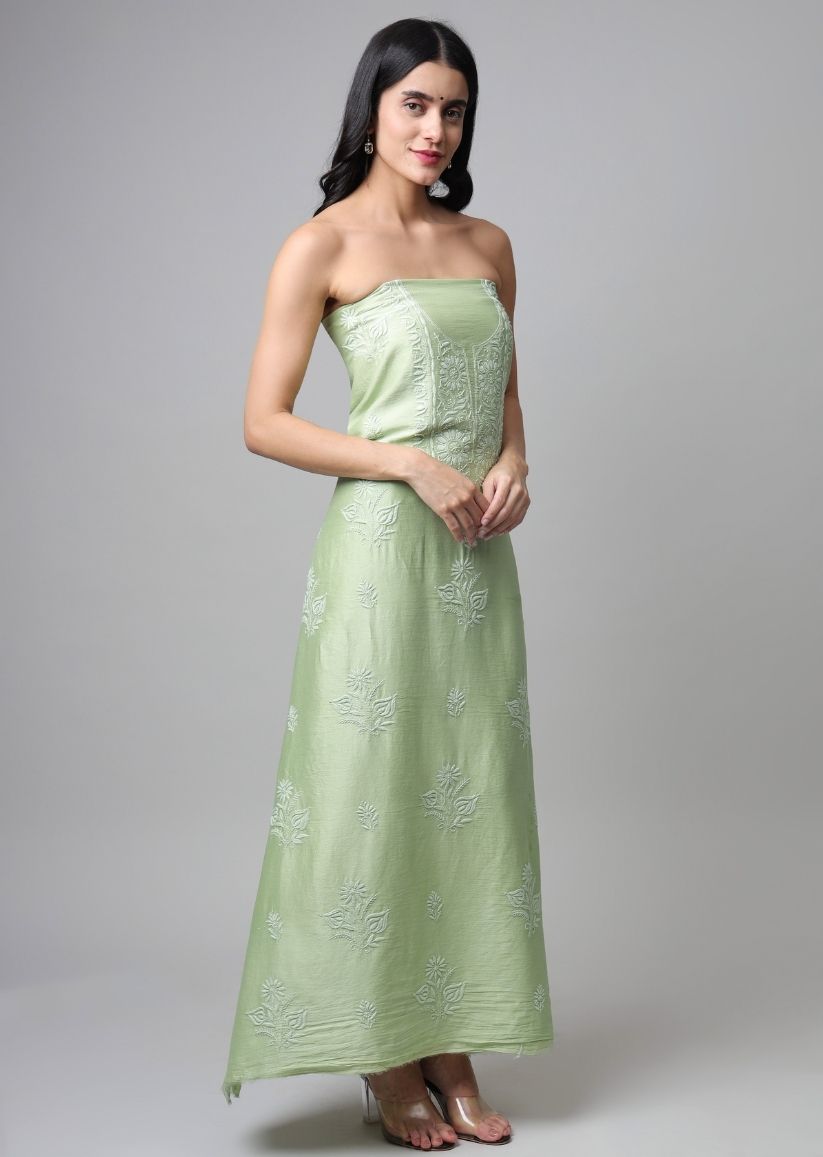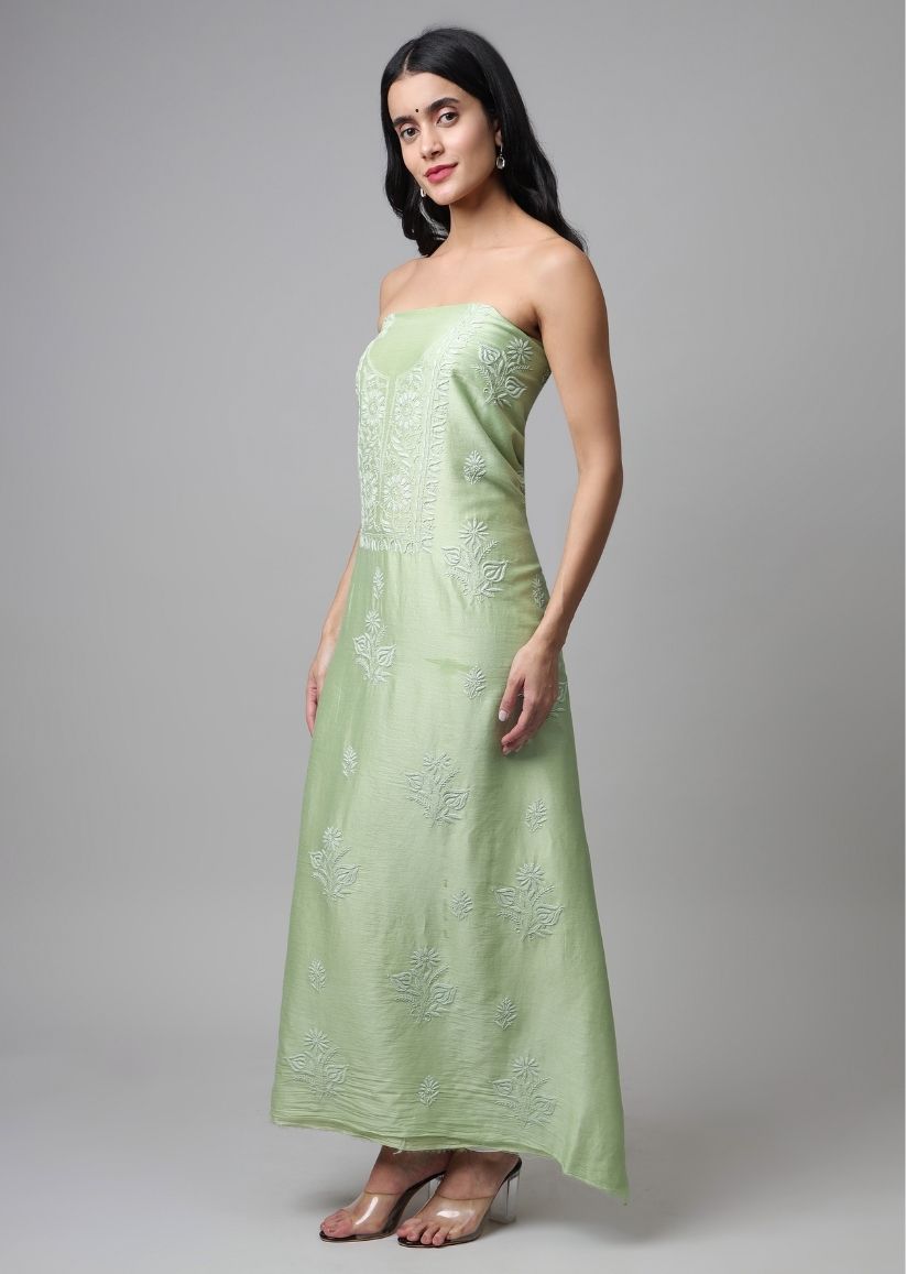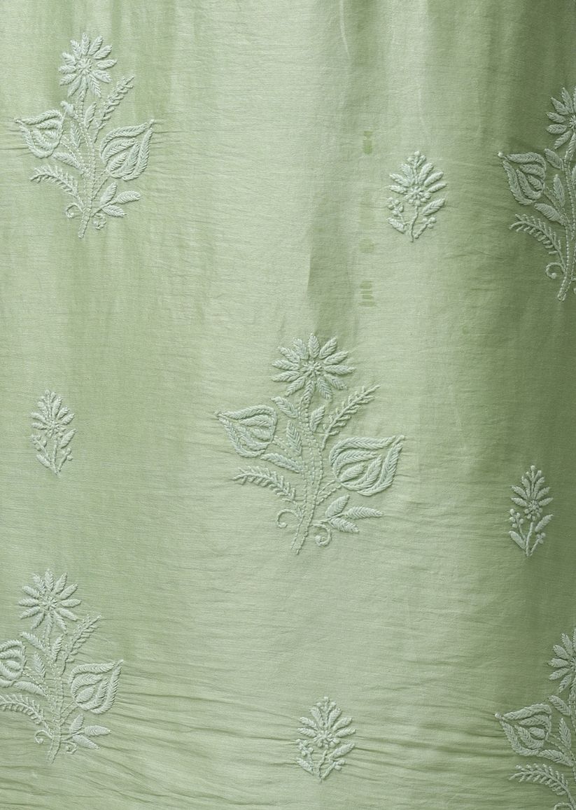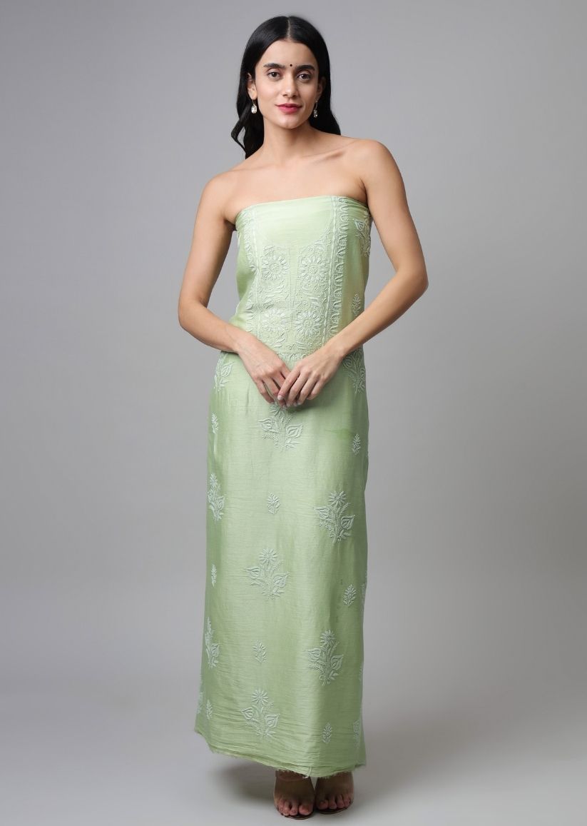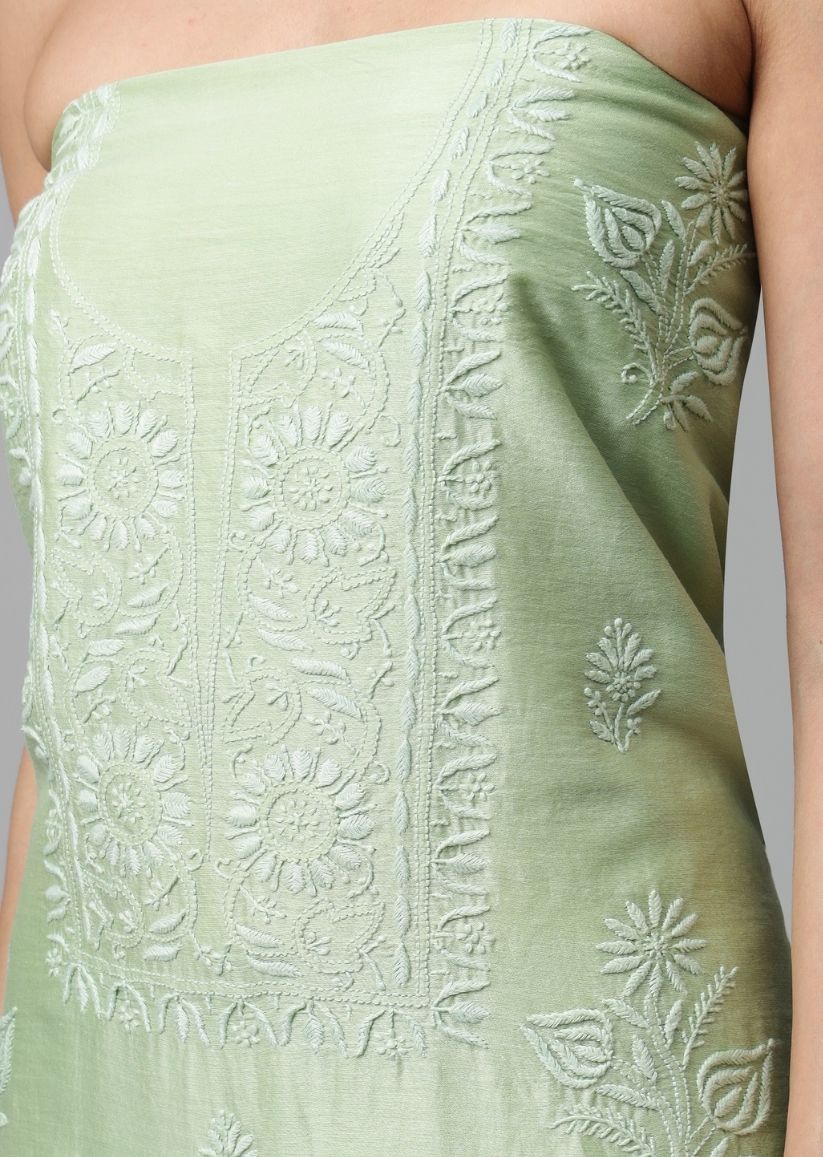 Firgun Lime Green Lucknowi Chikankari Chanderi Unstitched Kurta & Dupatta Set