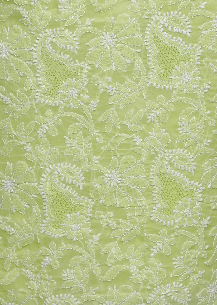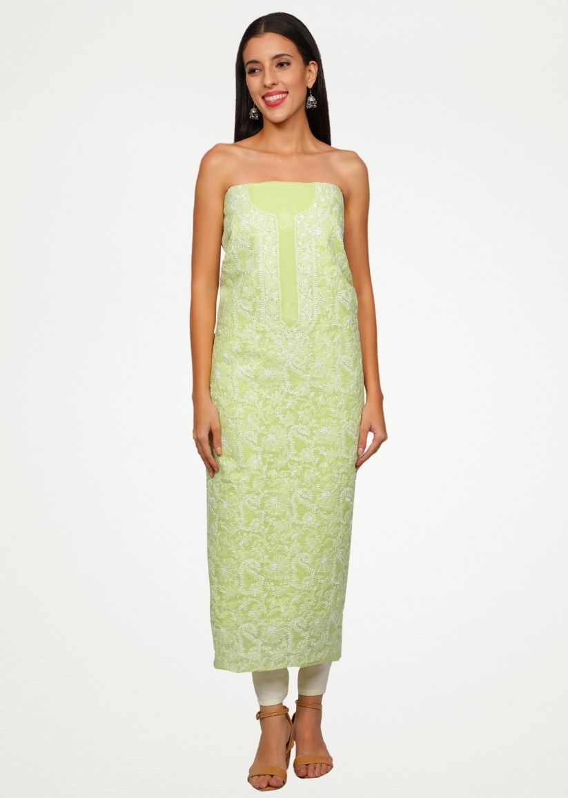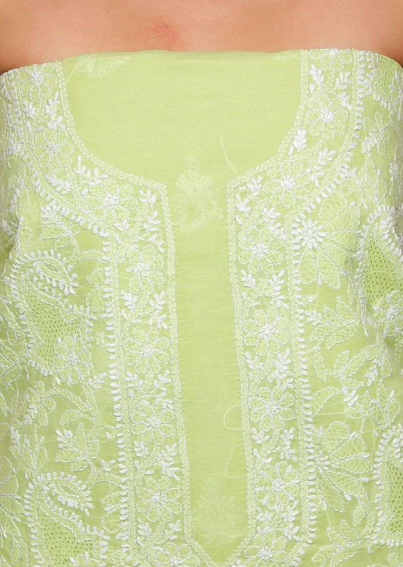 Firgun Lime Green Lucknowi Chikankari Cotton Unstitched Suit Set