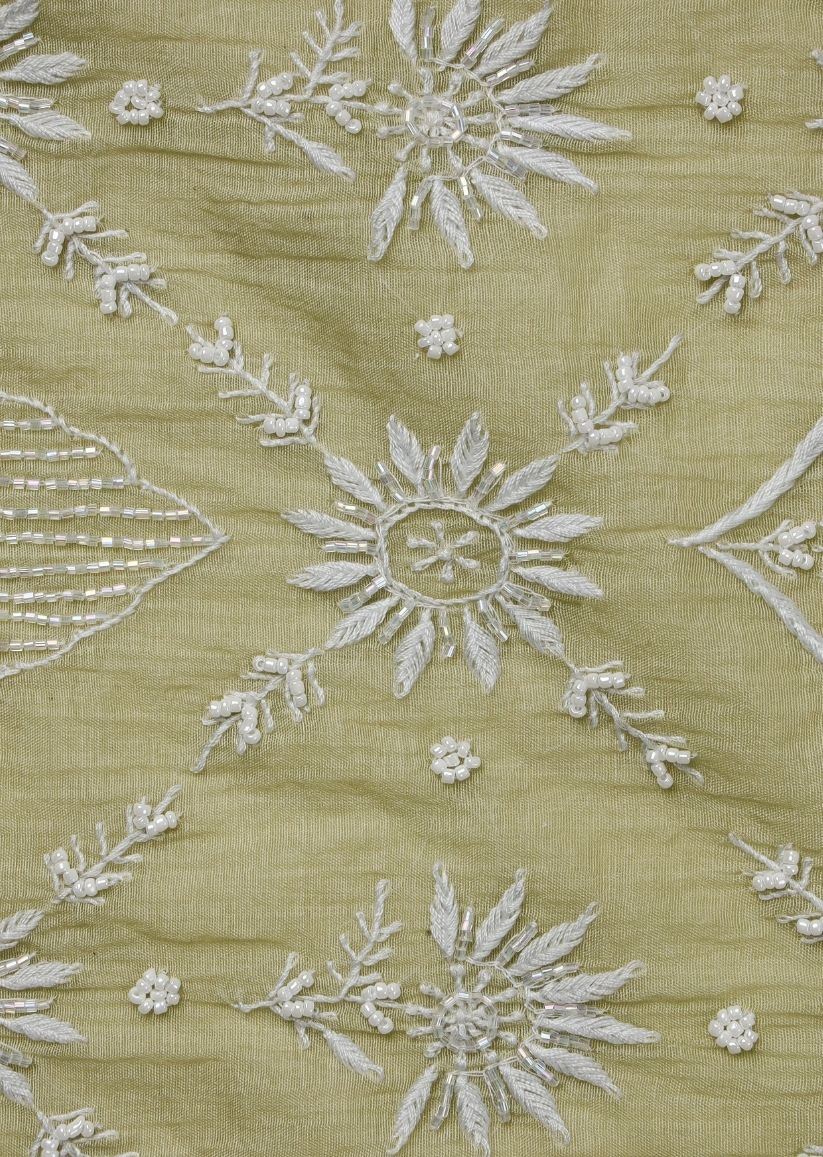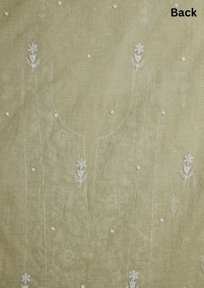 Firgun Mehendi Green Lucknowi Chikankari & Pearl Work Mul Chanderi Unstitched Kurta & Dupatta Set