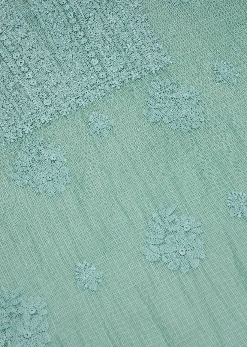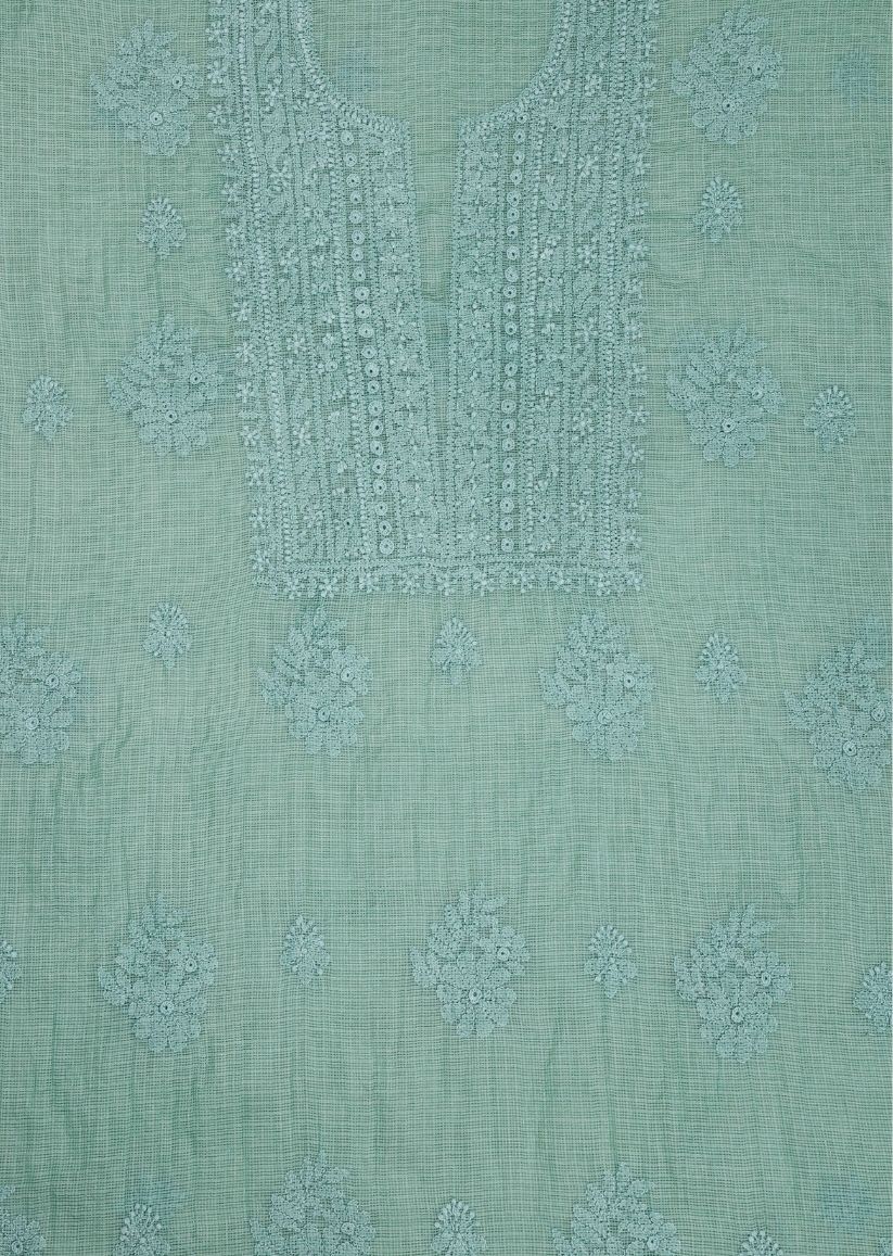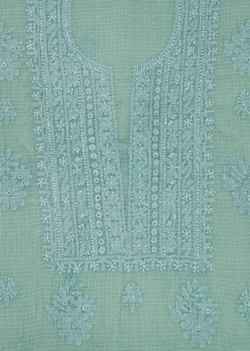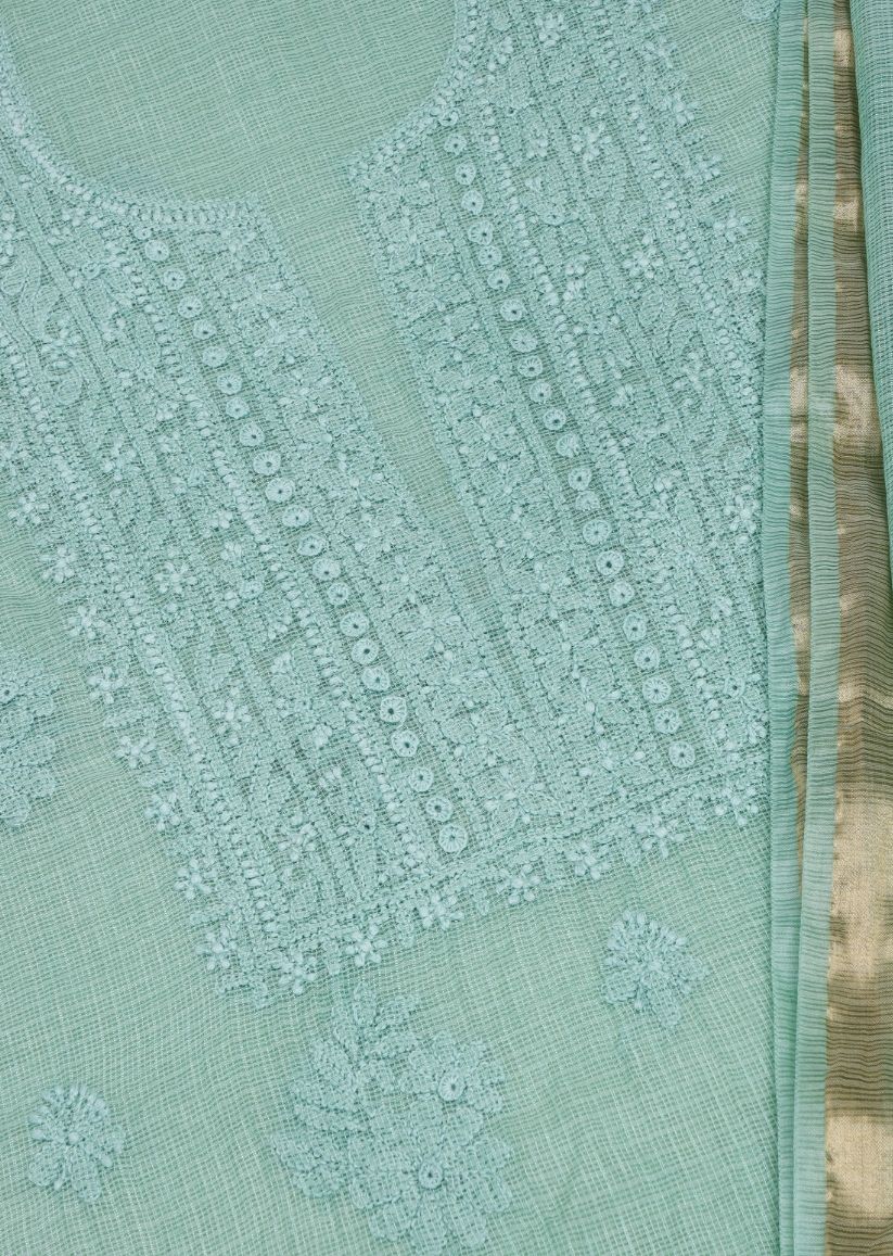 Firgun Mint Green Lucknowi Chikankari Kota Unstitched Kurta & Dupatta Set
