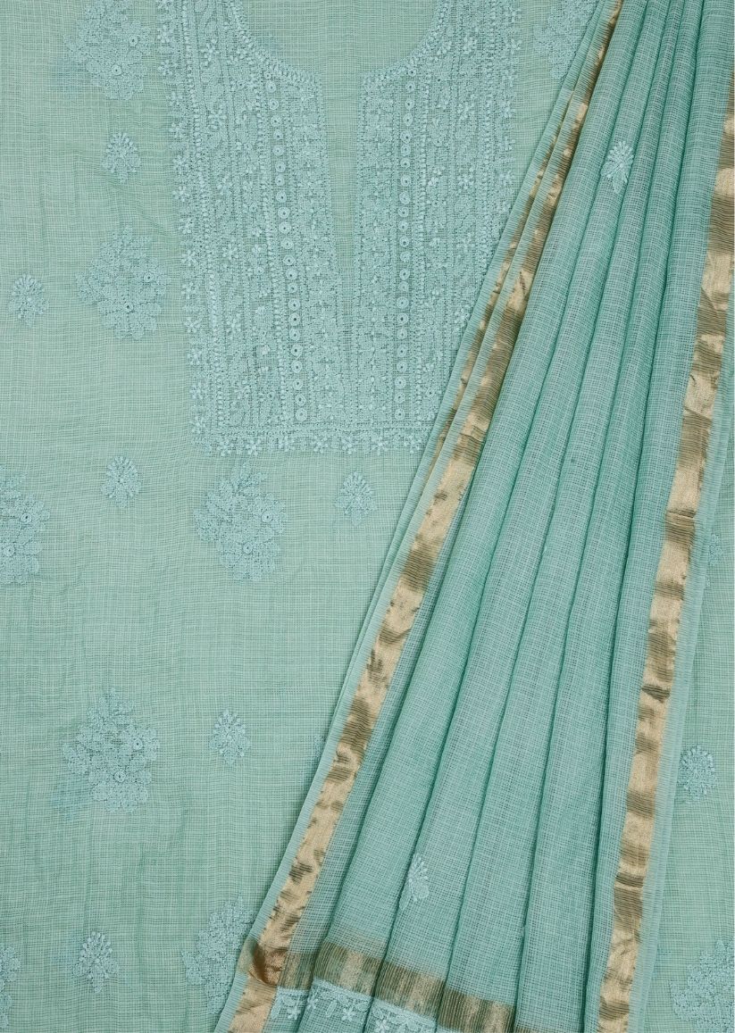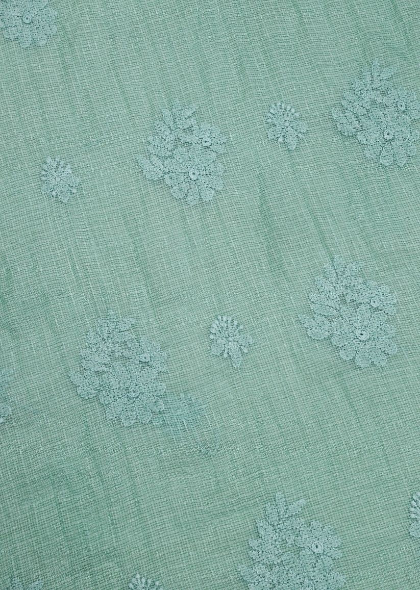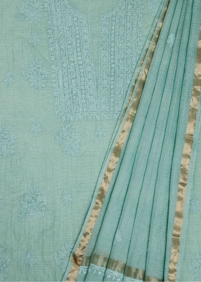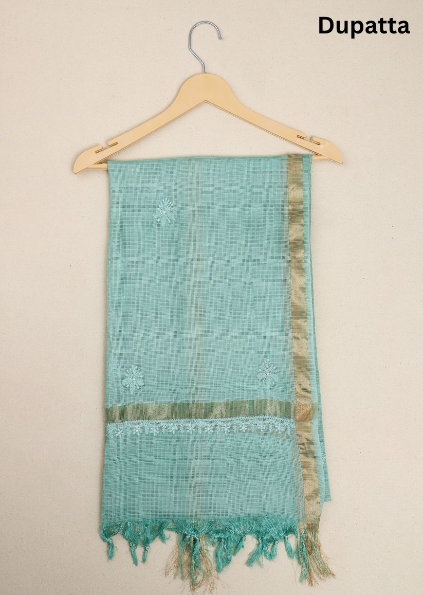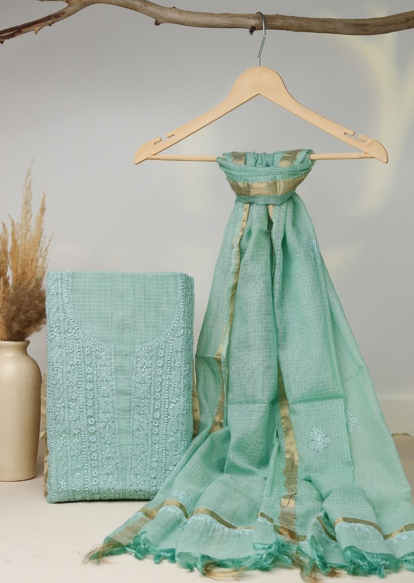 Firgun Mint Green Lucknowi Chikankari Kota Unstitched Kurta & Dupatta Set