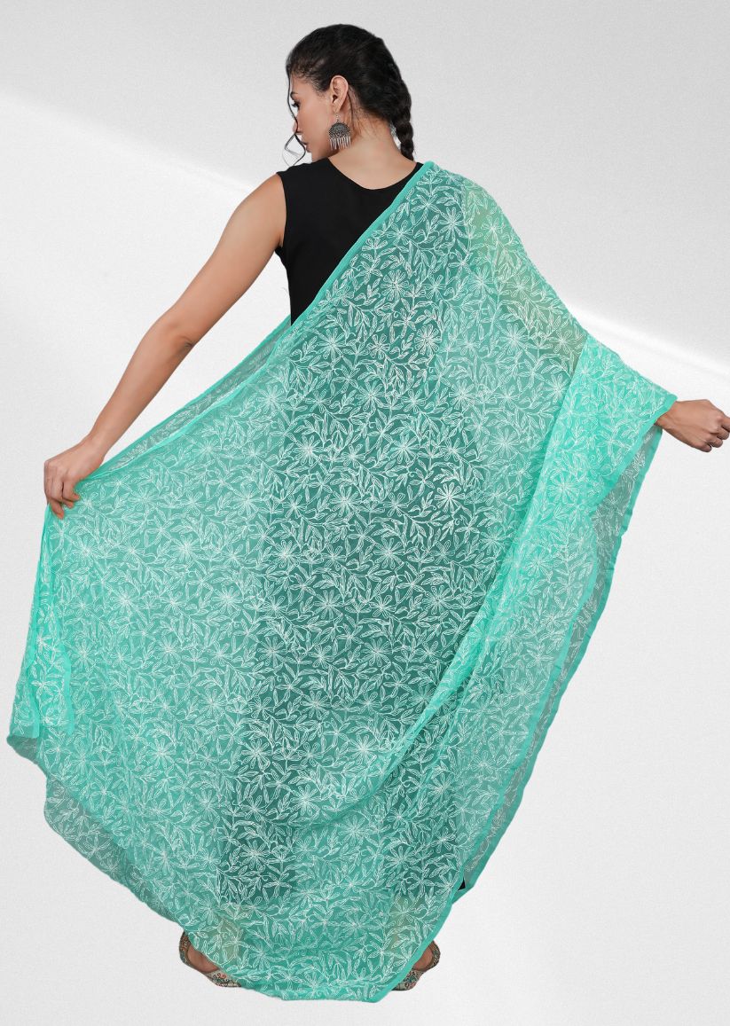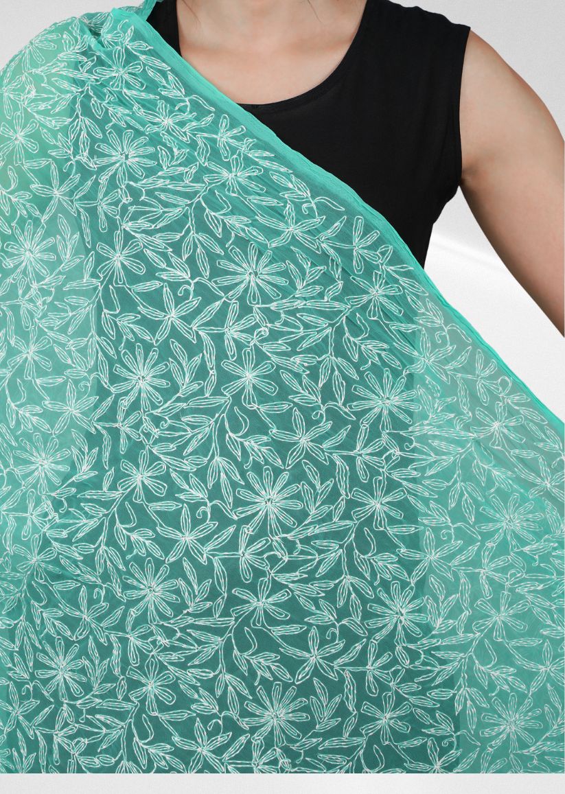 Firgun Mint Green Tepchi Lucknowi Chikankari Georgette Dupatta