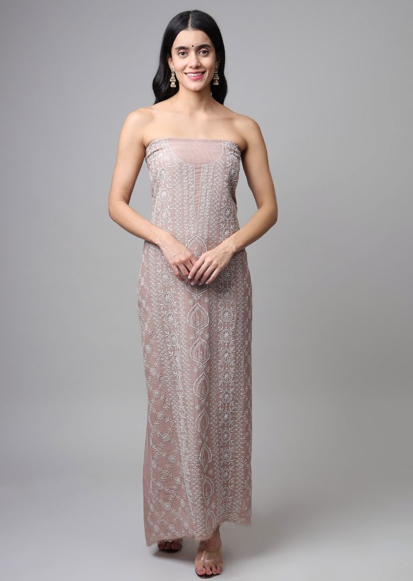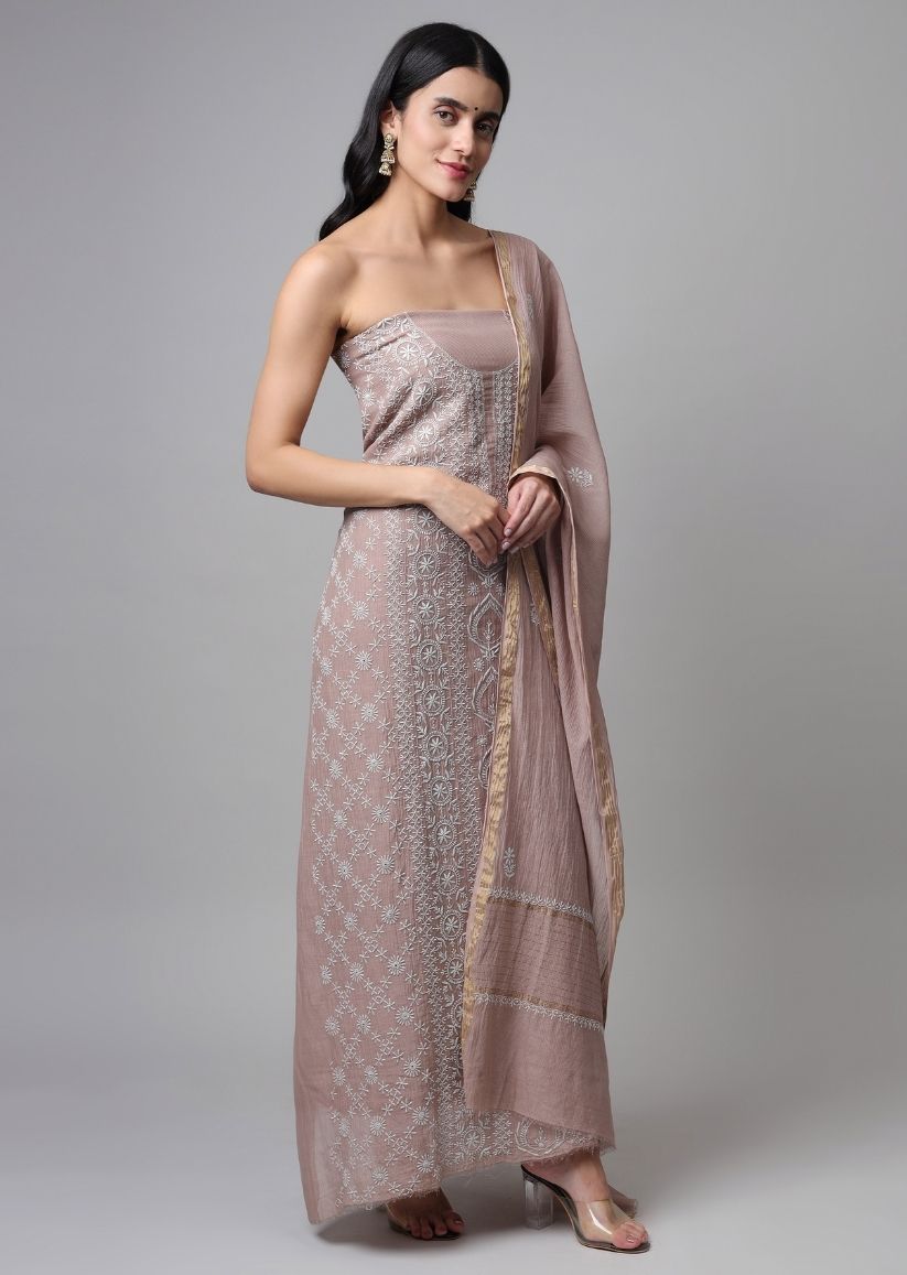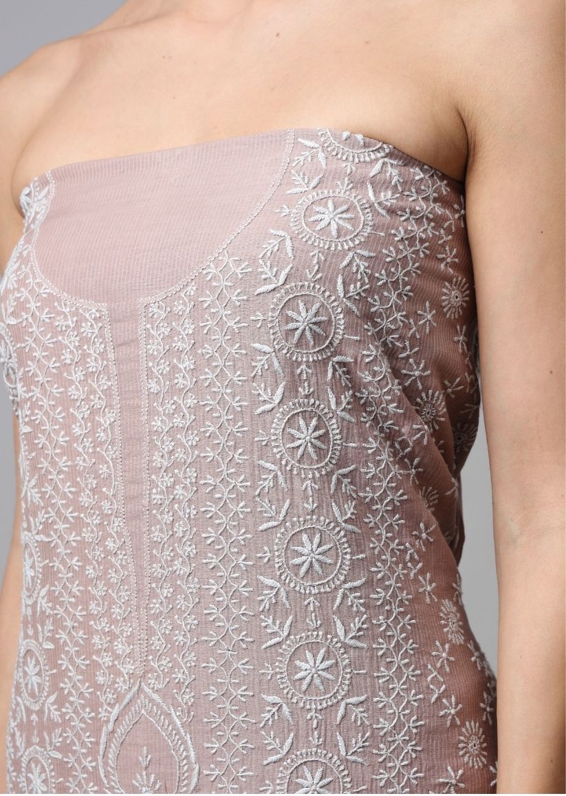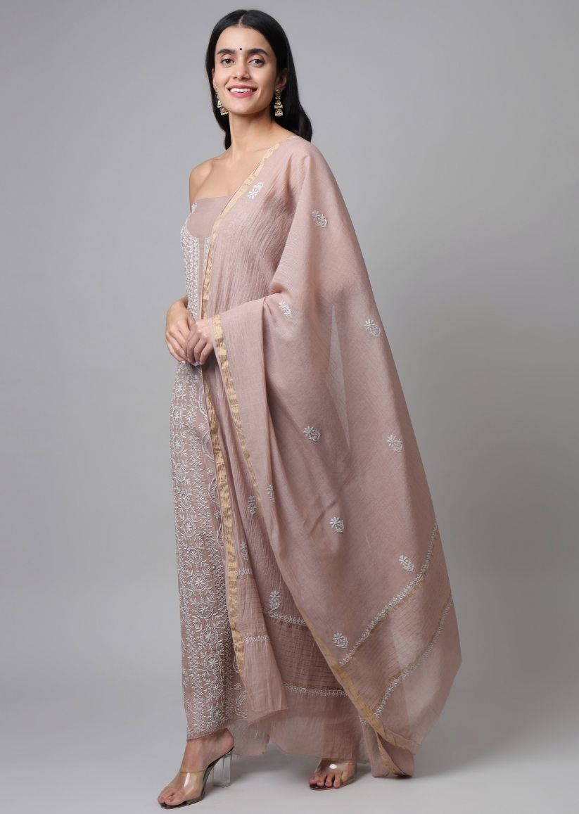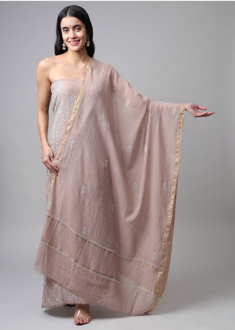Firgun Mouse Lucknowi Chikankari Maheshwari Cotton Unstitched Kurta & Dupatta Set