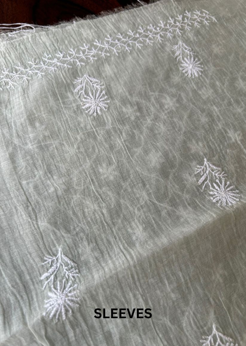 Firgun Pale Mint Green Lucknowi Chikankari Mul Chanderi Unstitched Kurta & Dupatta Set