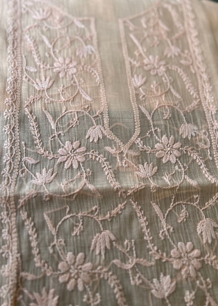 Firgun Blush Pink Lucknowi Chikankari Mul Chanderi Unstitched Kurta & Dupatta Set