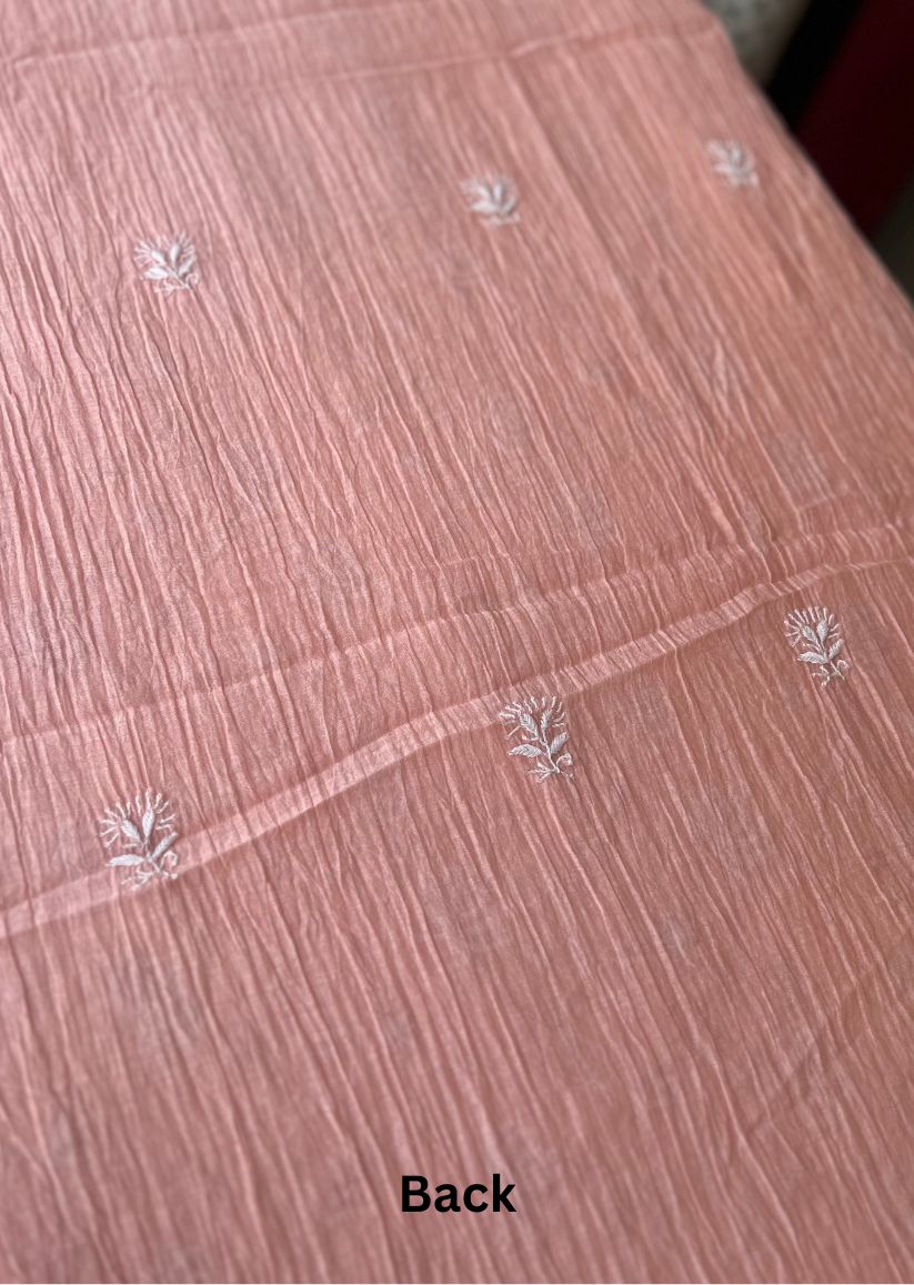 Firgun Peach Lucknowi Chikankari Mul Chanderi Unstitched Kurta & Dupatta Set