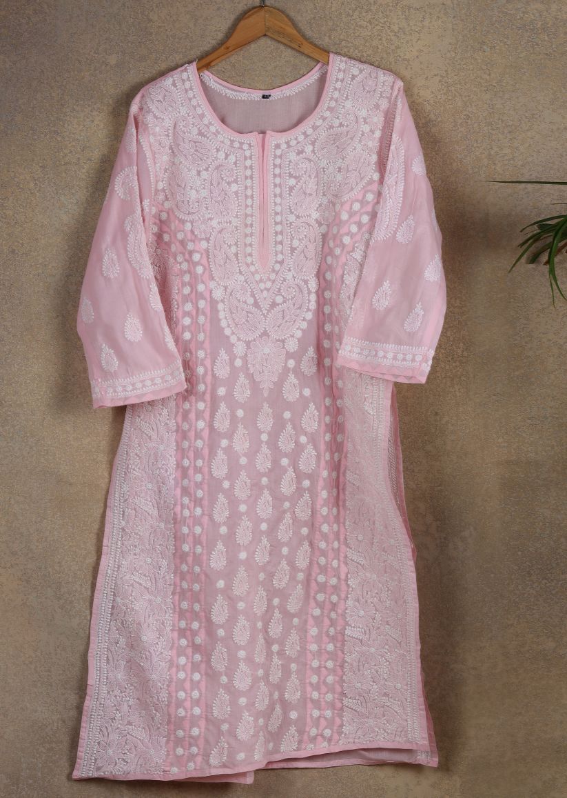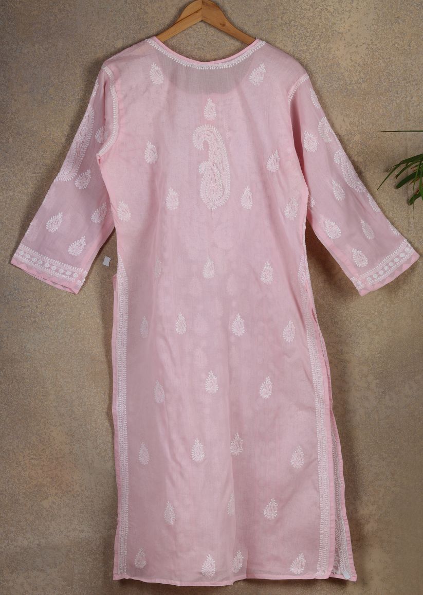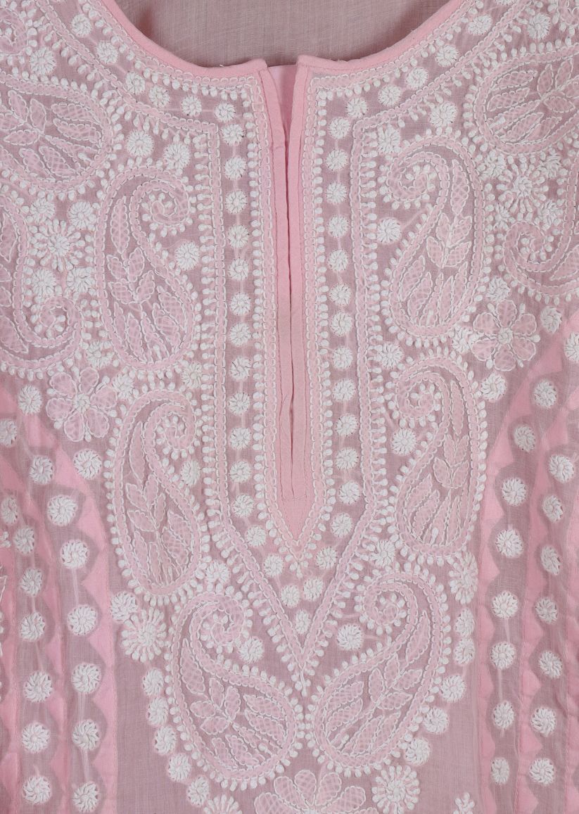 Firgun Pink Lucknowi Chikankari Cotton Kurta