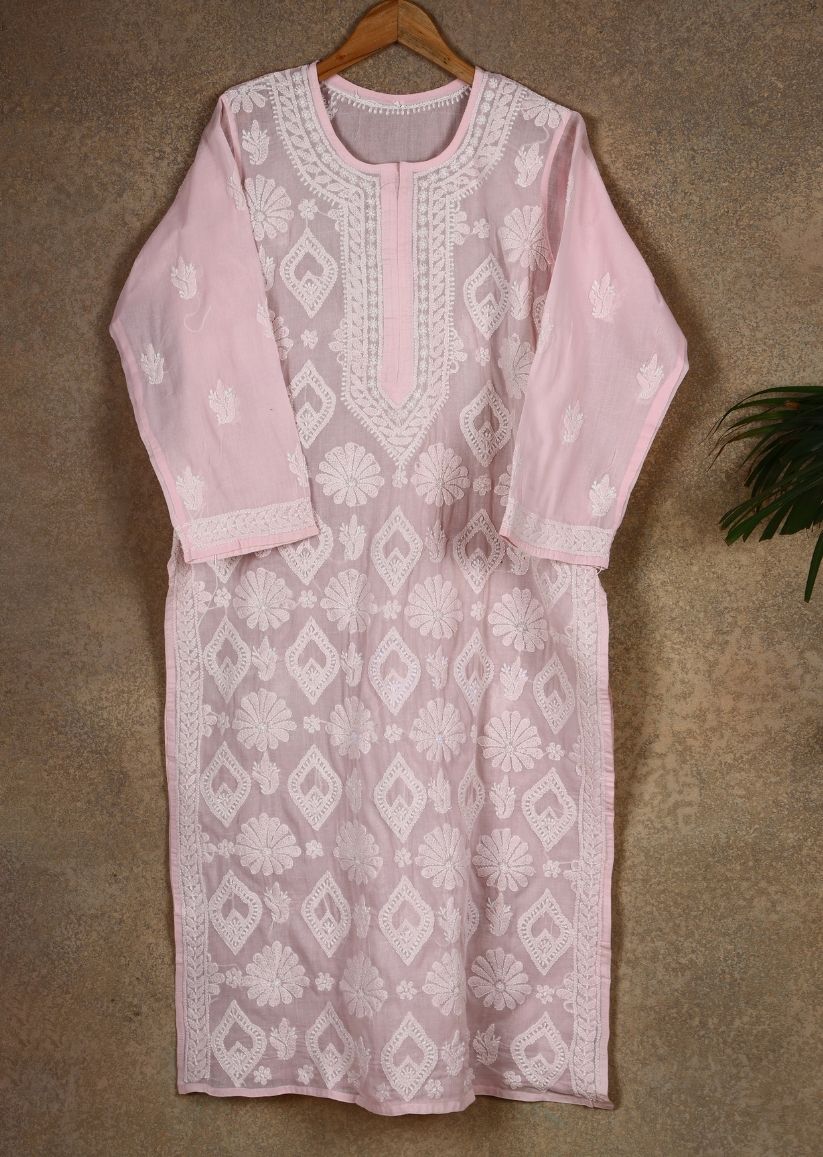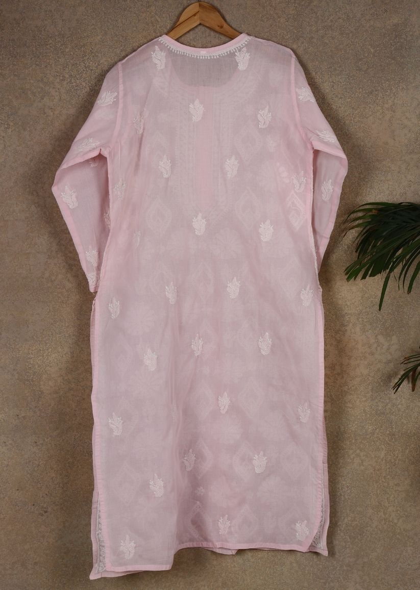 Firgun Pink Lucknowi Chikankari Cotton Kurta with Front Jaal