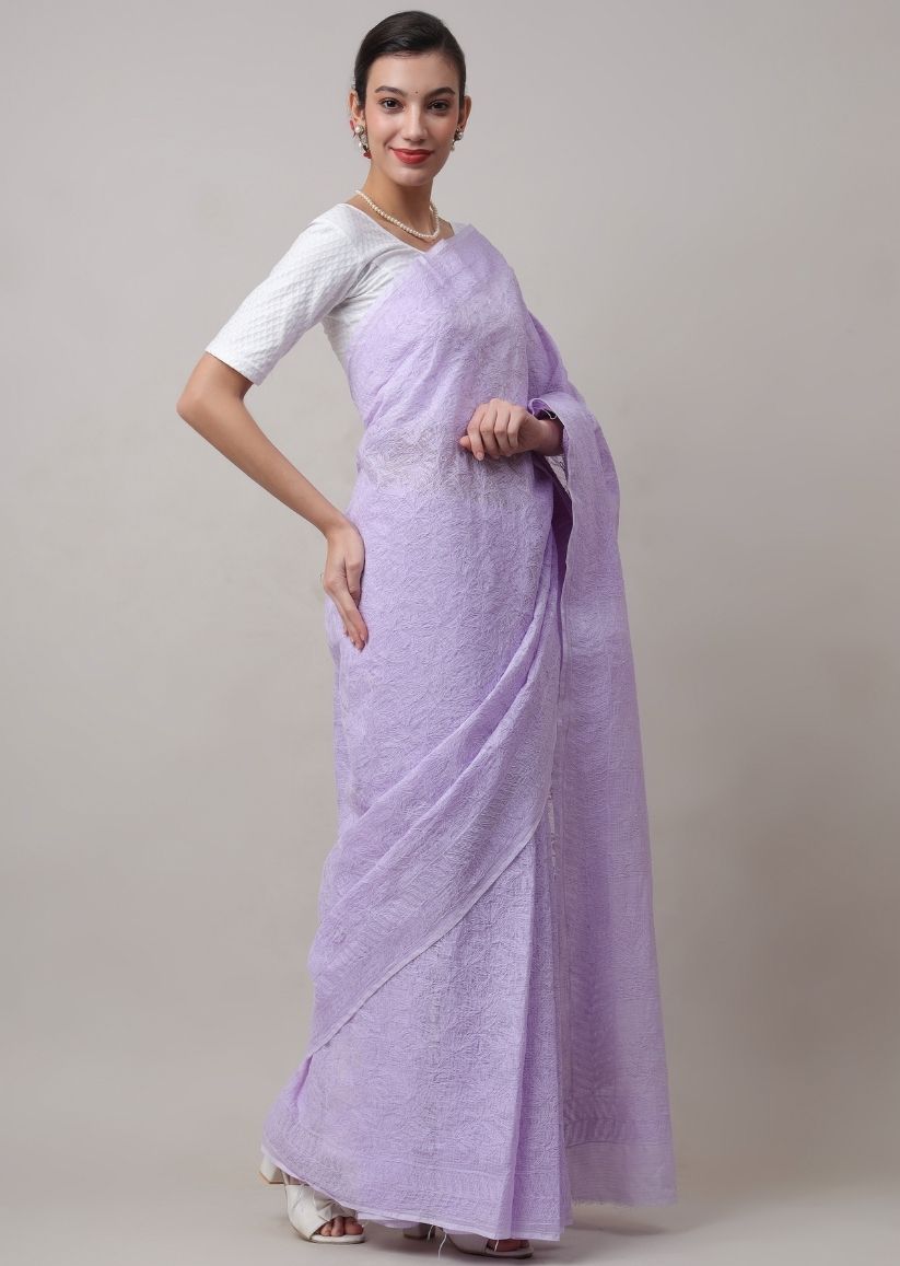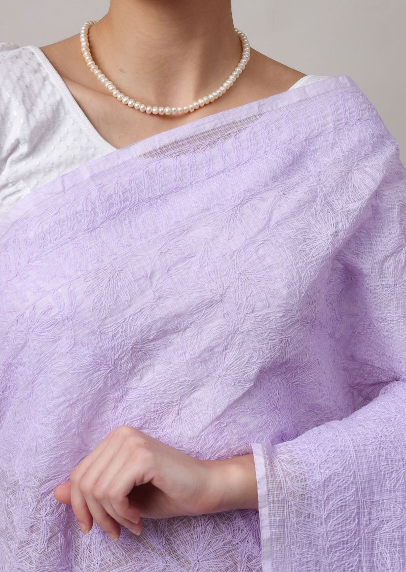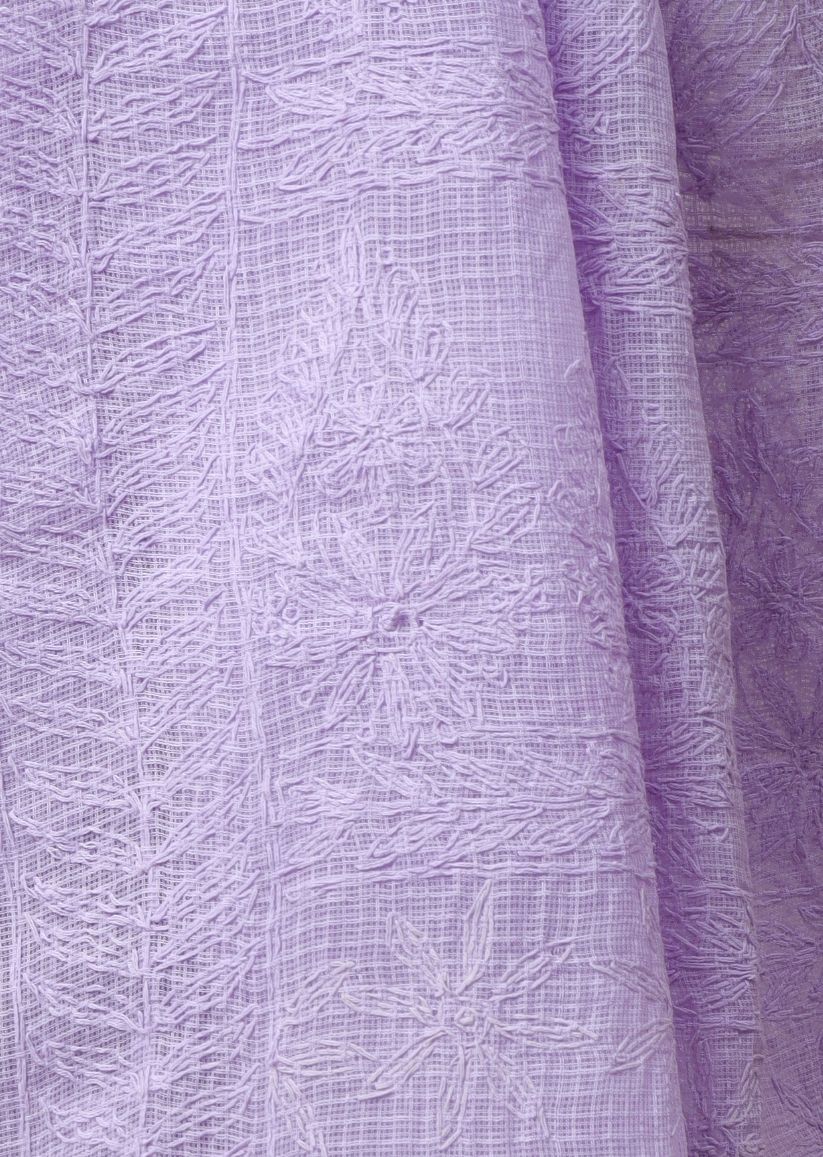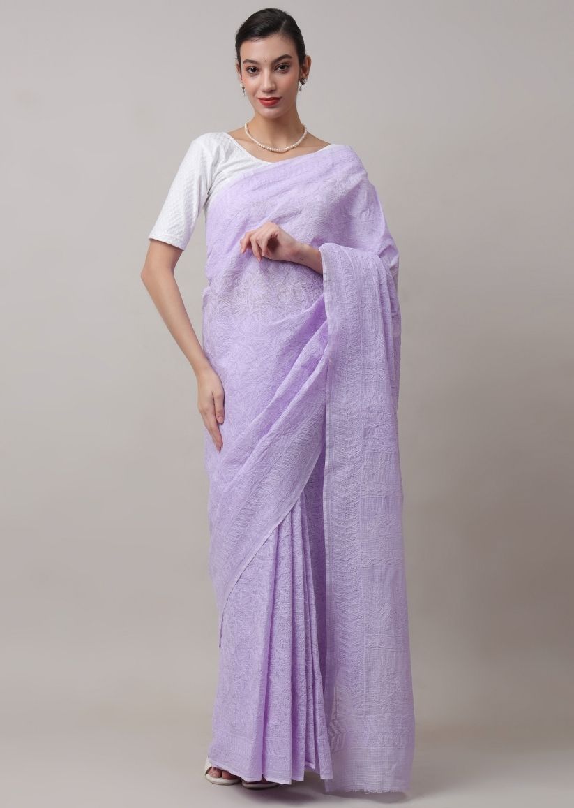Firgun Lavender Lucknowi Chikankari Kota Doria Tepchi Work Saree with Blouse Piece