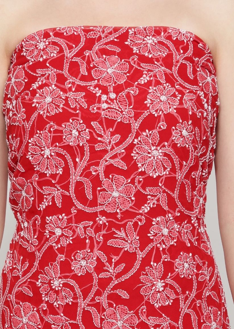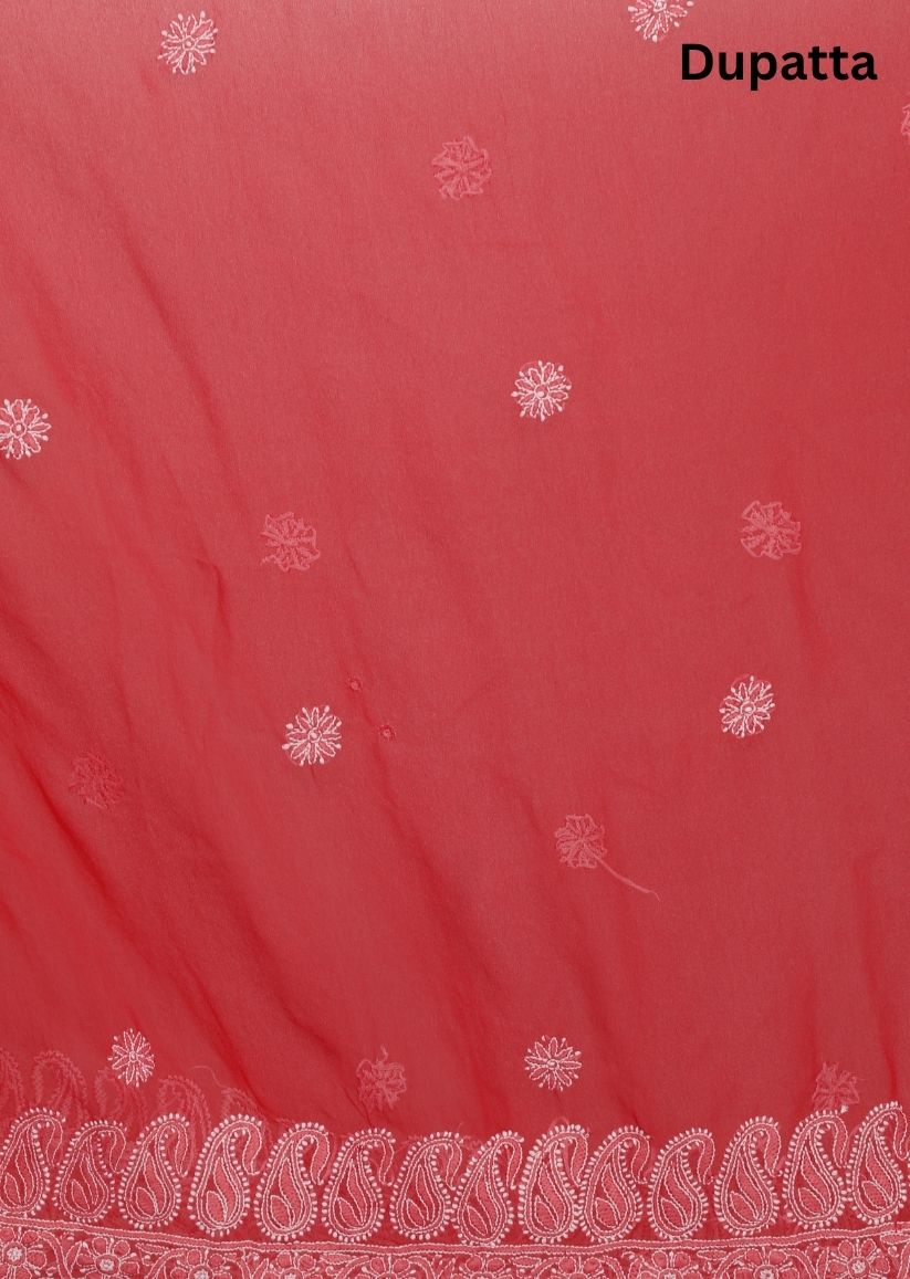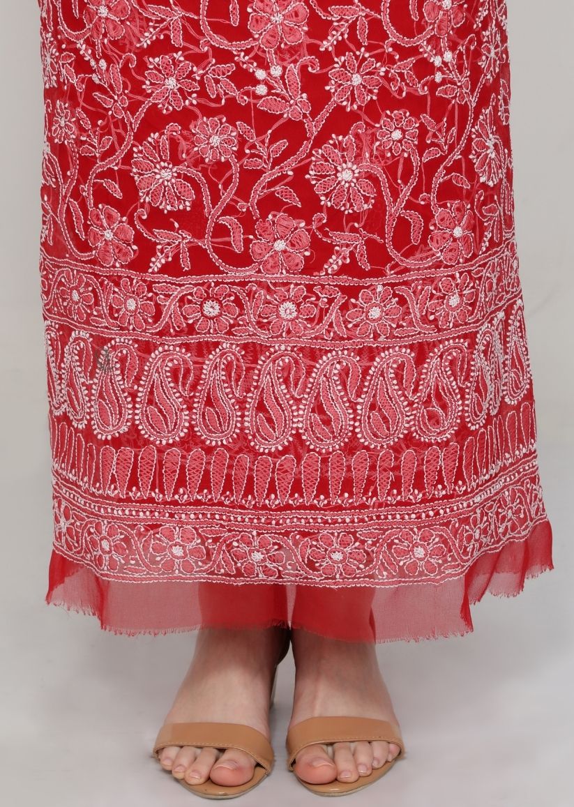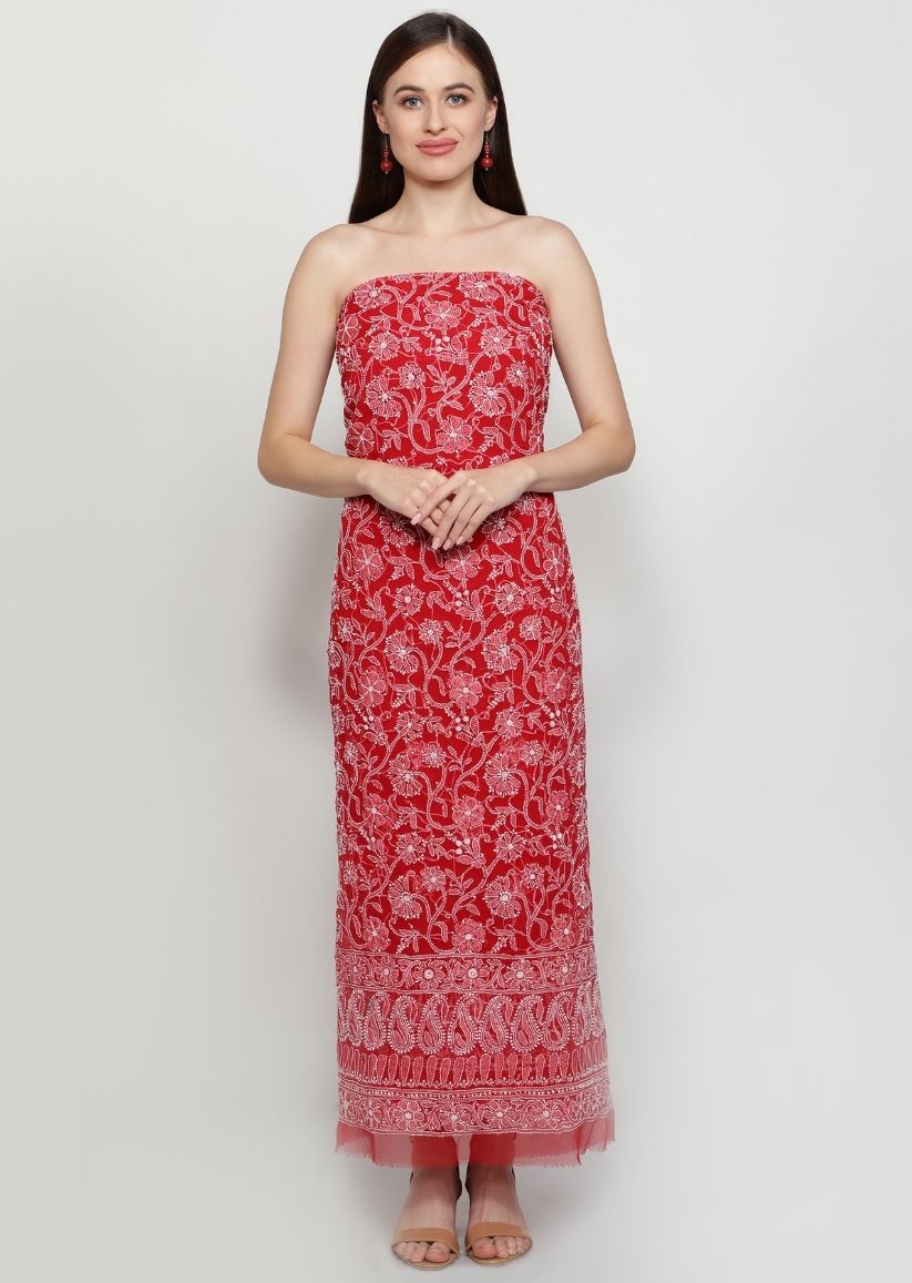Firgun Red Lucknowi Chikankari Georgette Unstitched Suit Set