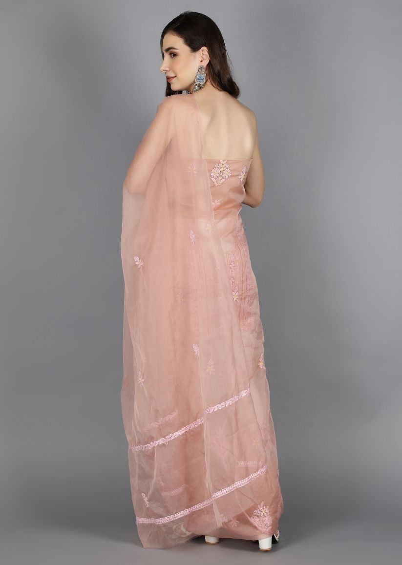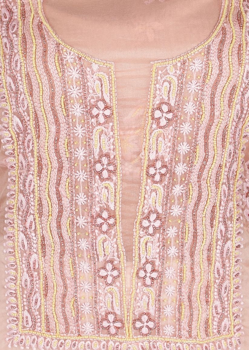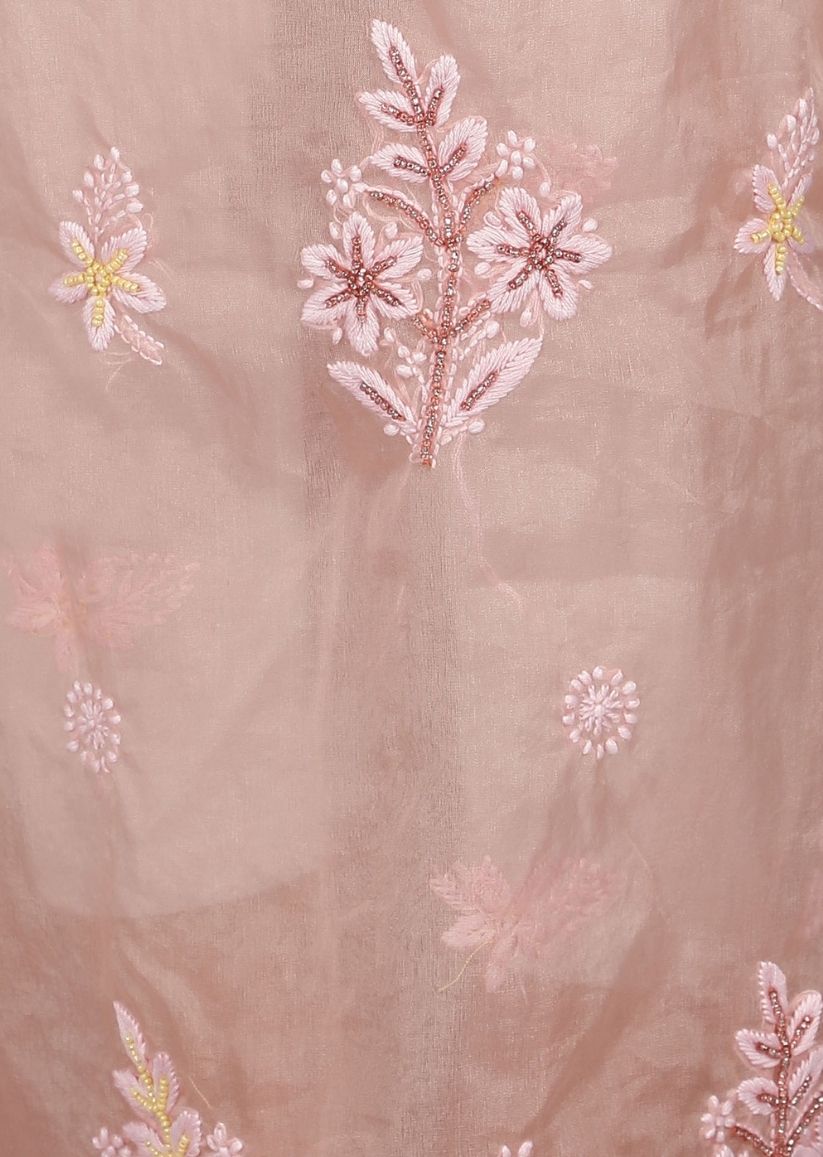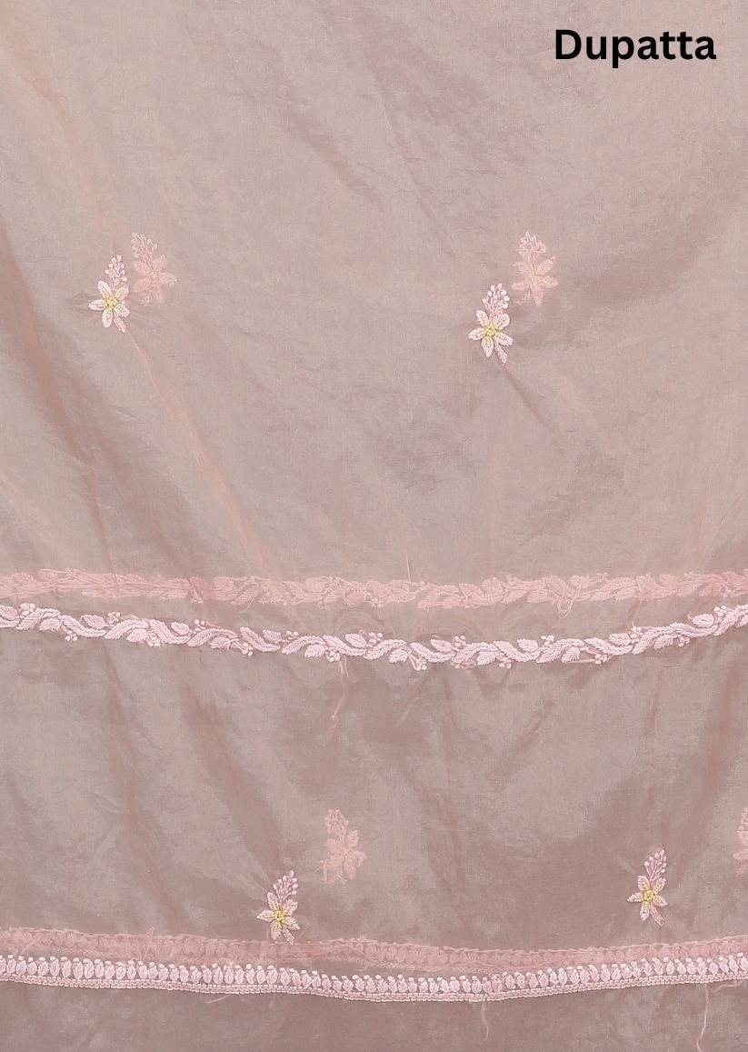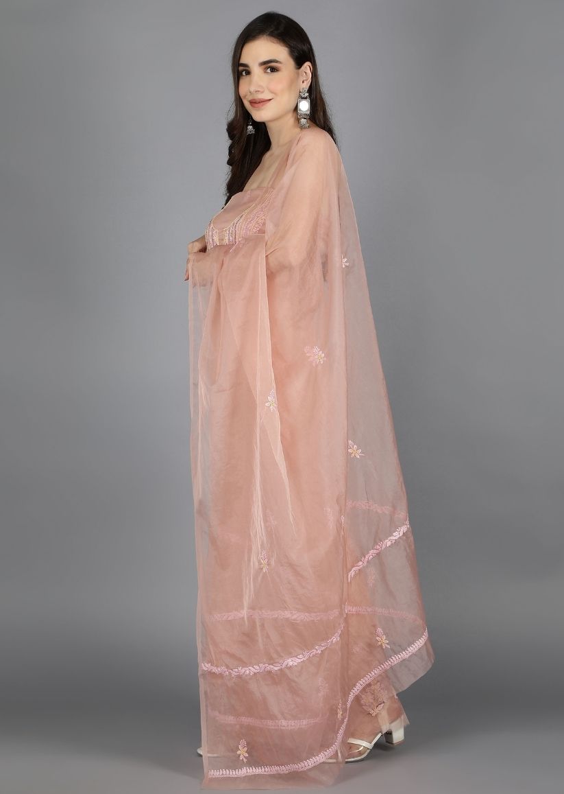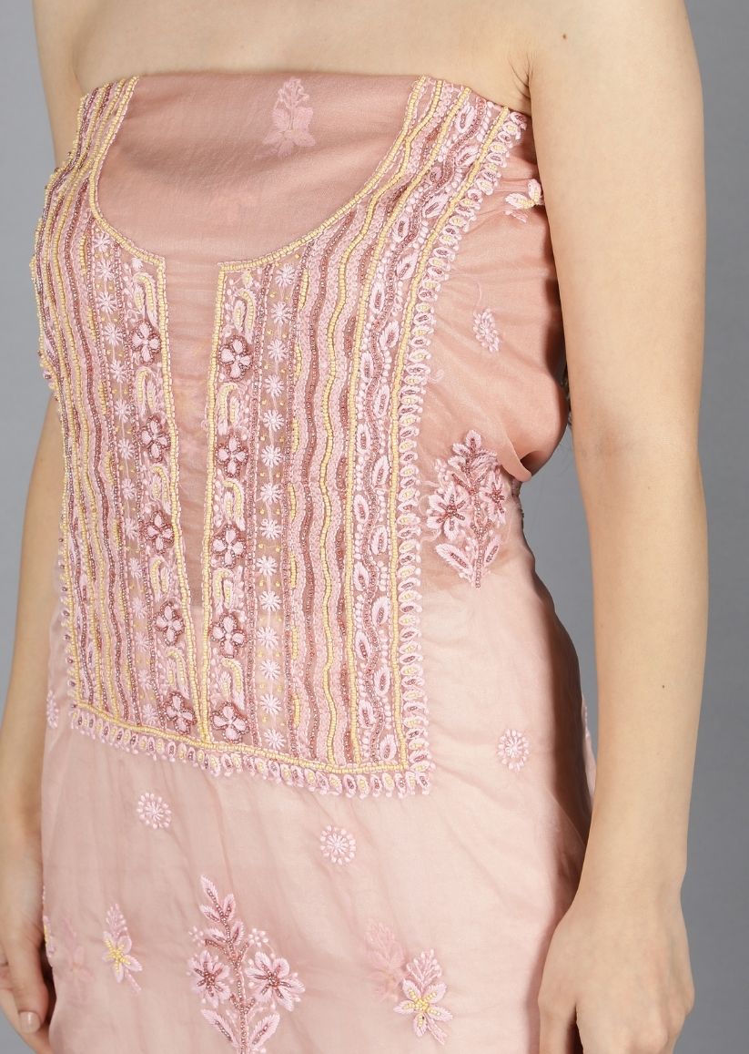 Firgun Rose gold Lucknowi Chikankari Organza Unstitched Kurta & Dupatta Set
