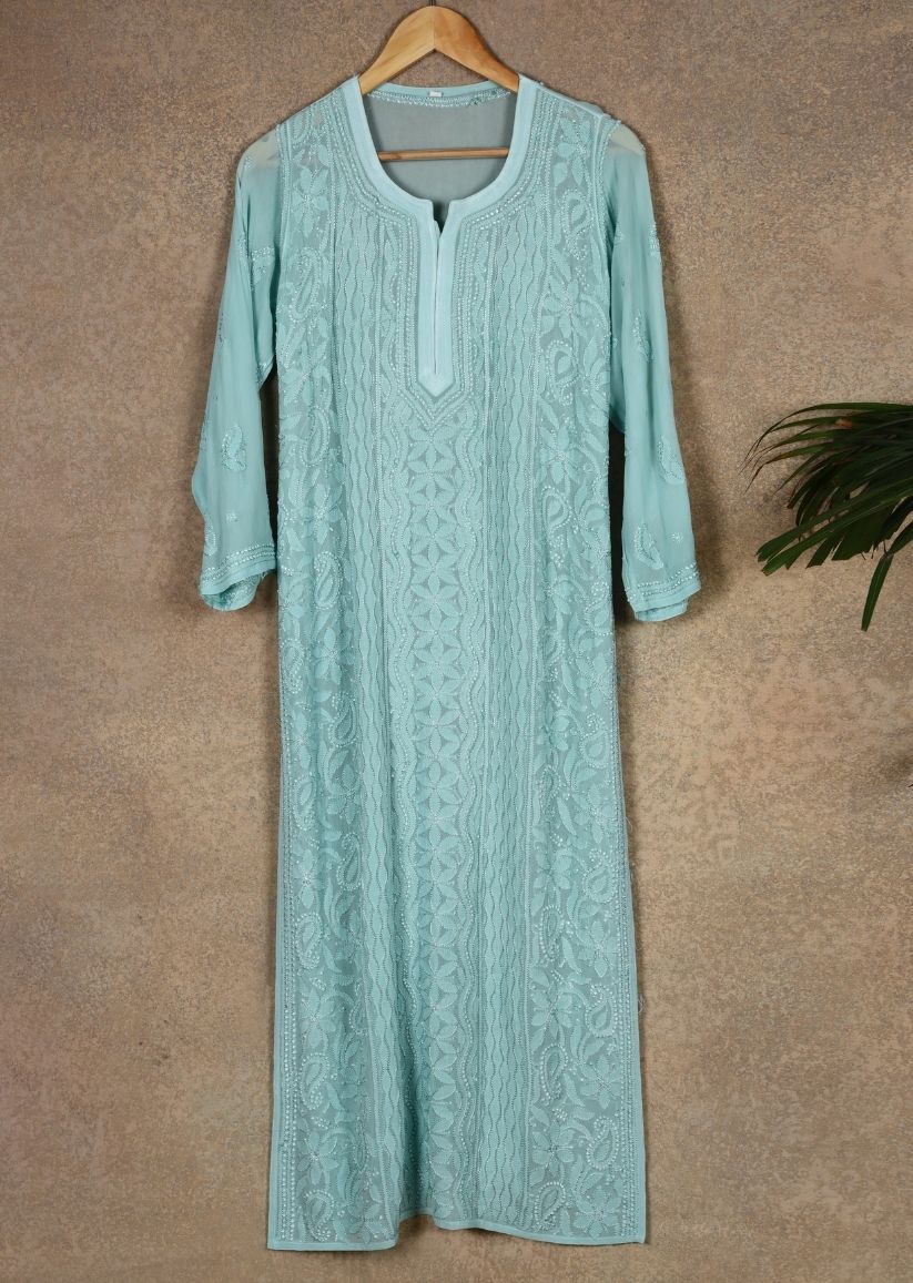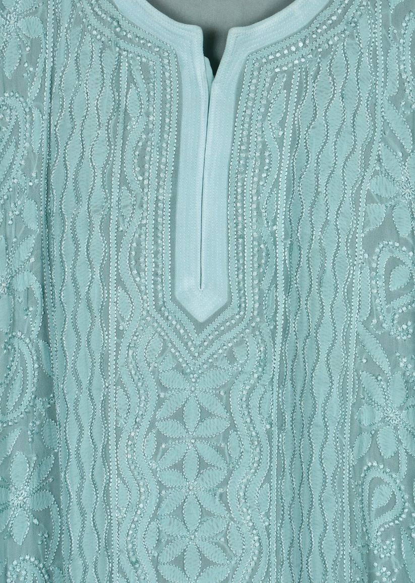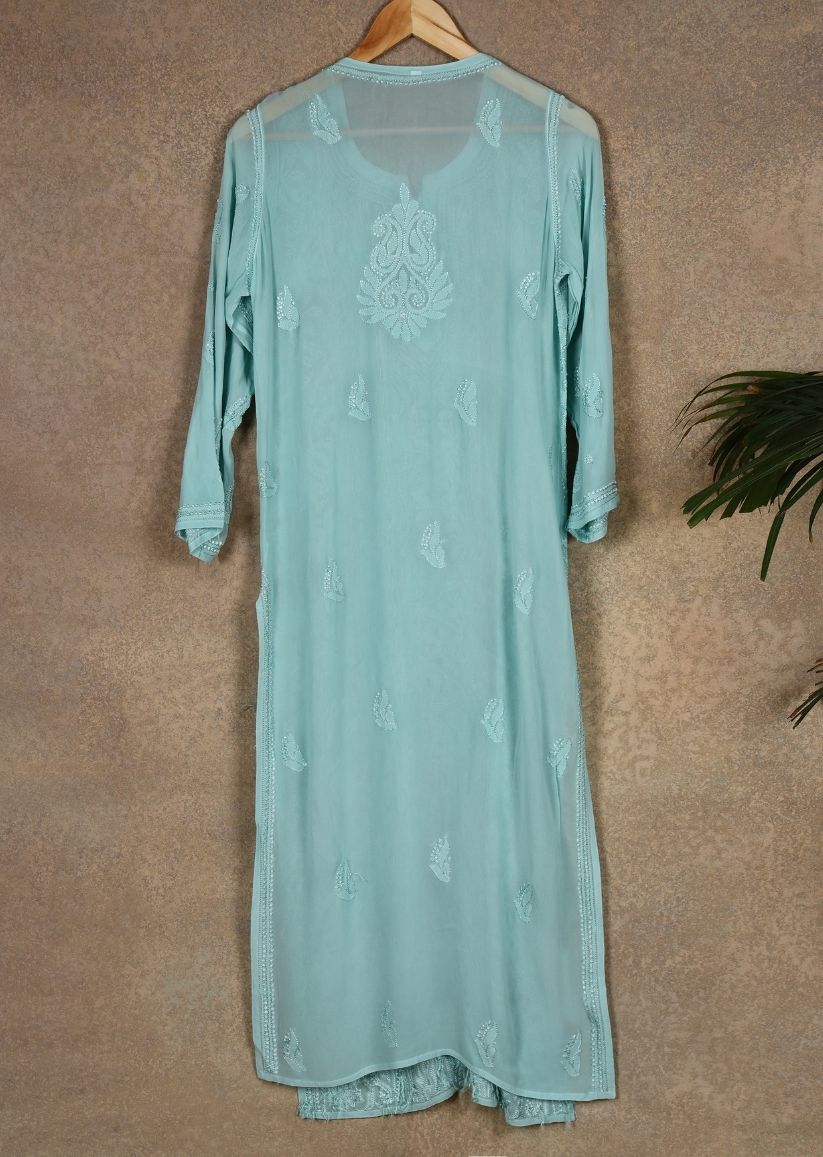 Firgun Sea Green Lucknowi Chikankari Viscose Georgette Kurta